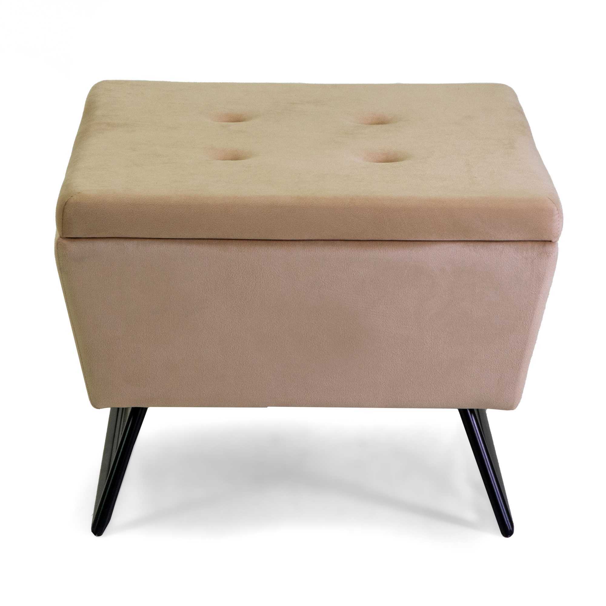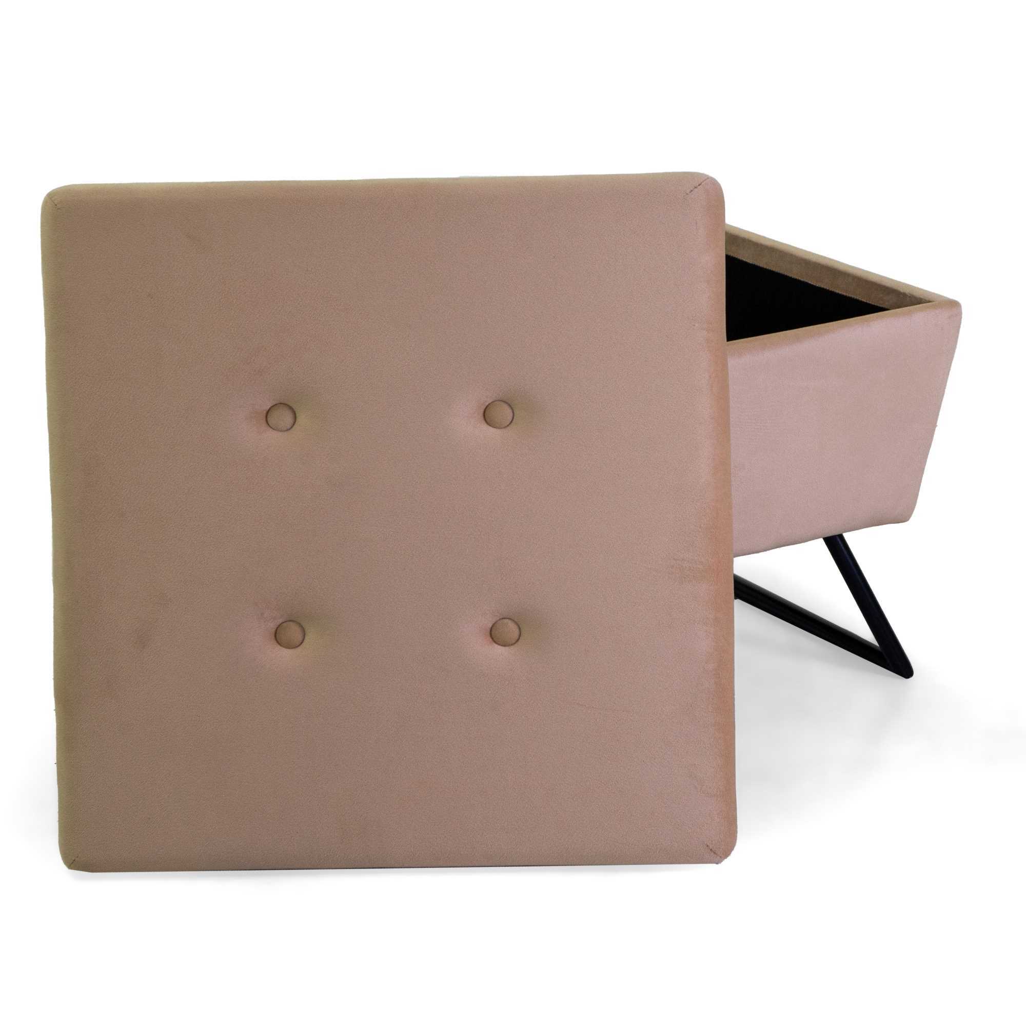 Puff velluto con gambe crema quadro cm58x58h42,5