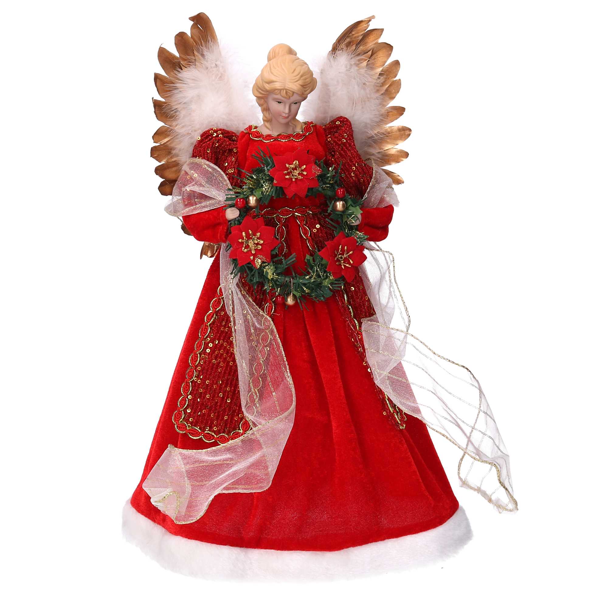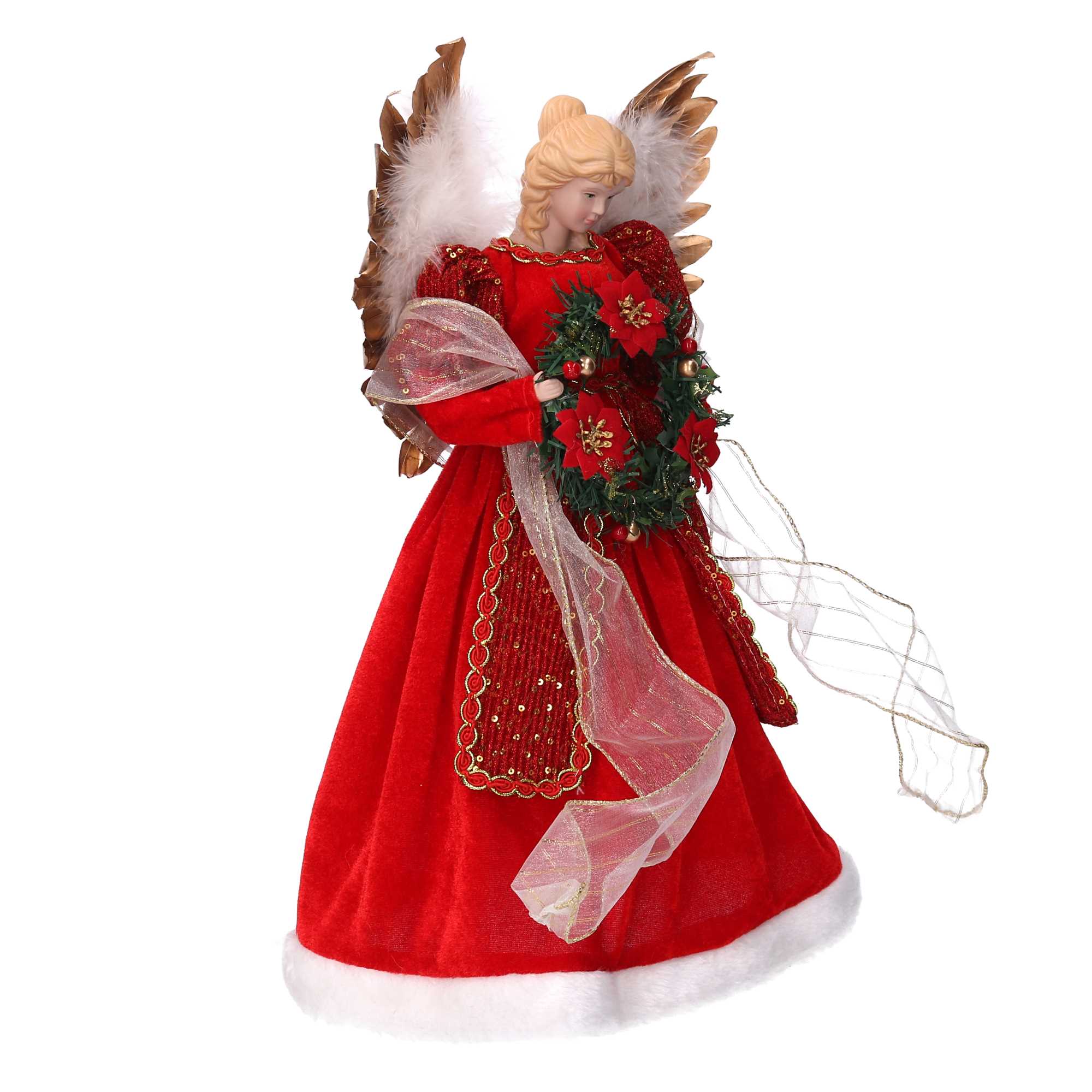Puntale tessuto angelo con ghirlanda rosso cmø26h40