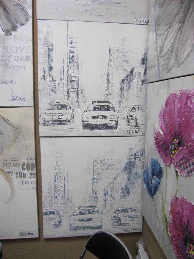 Quadro dipinto astratto auto in citta’ 2 assortiti cm150x50x3