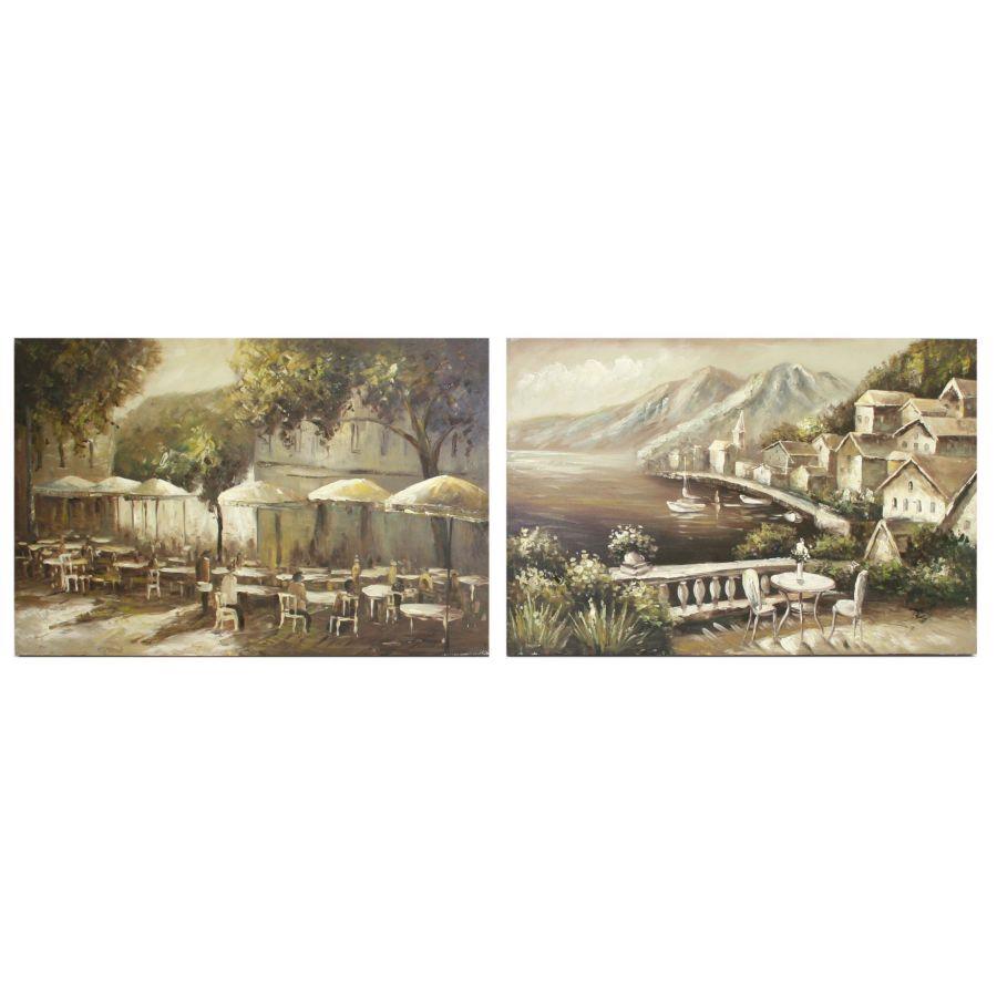 Quadro dipinto paesaggio dehors 2 assortiti cm60x90
