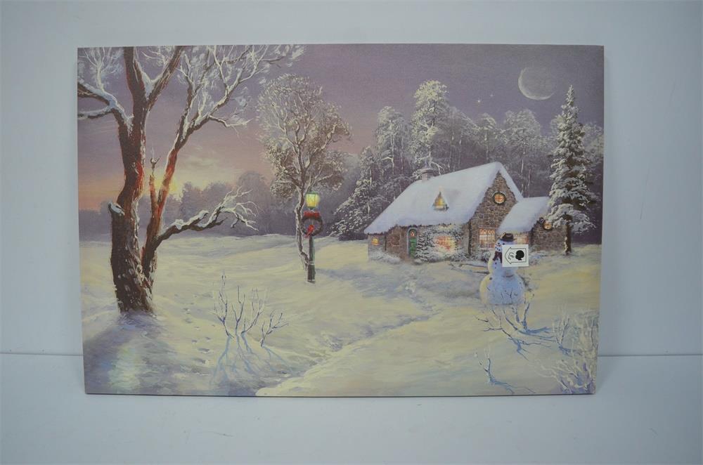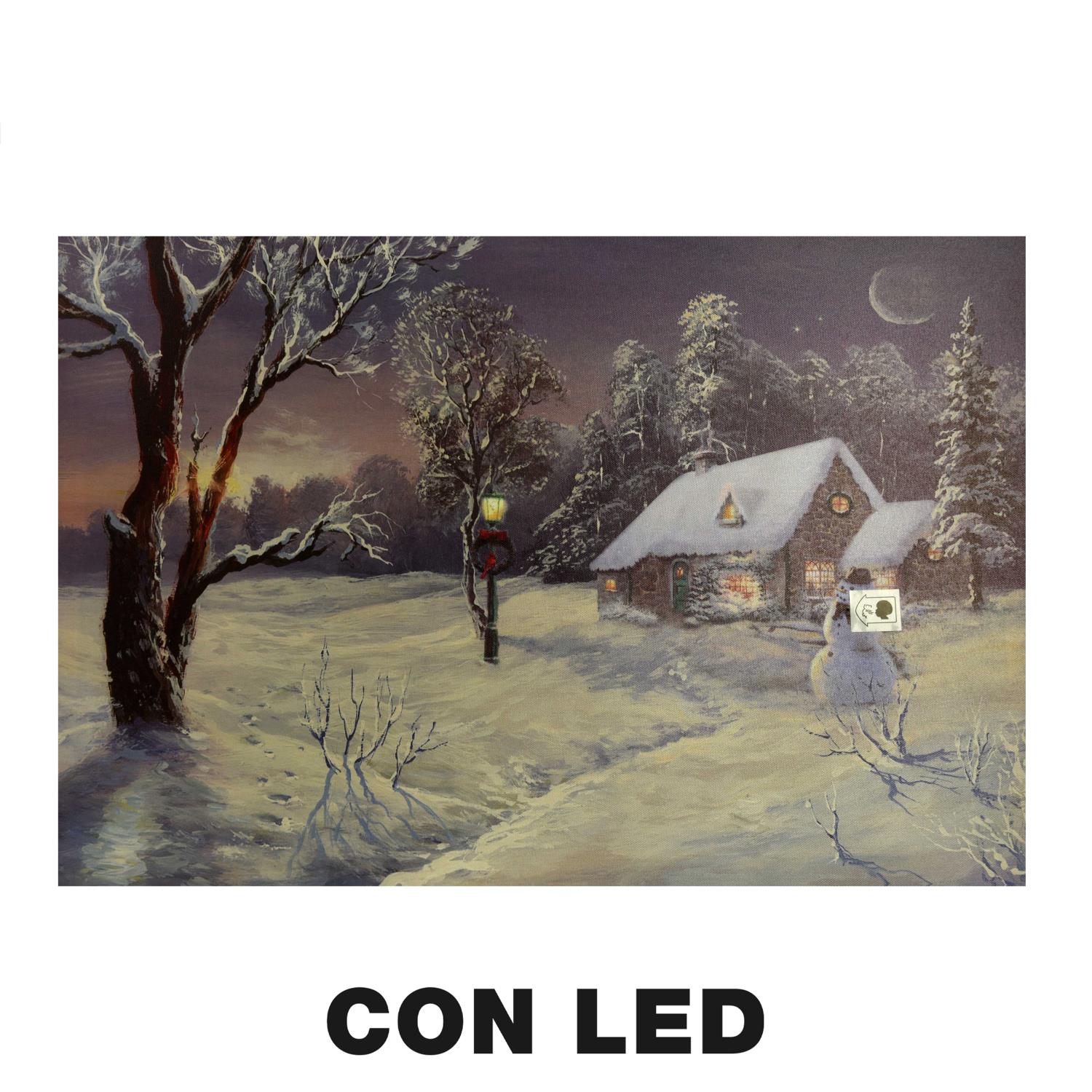Quadro led legno casa innevata multicolor rettangolare cm60x40h1,8n