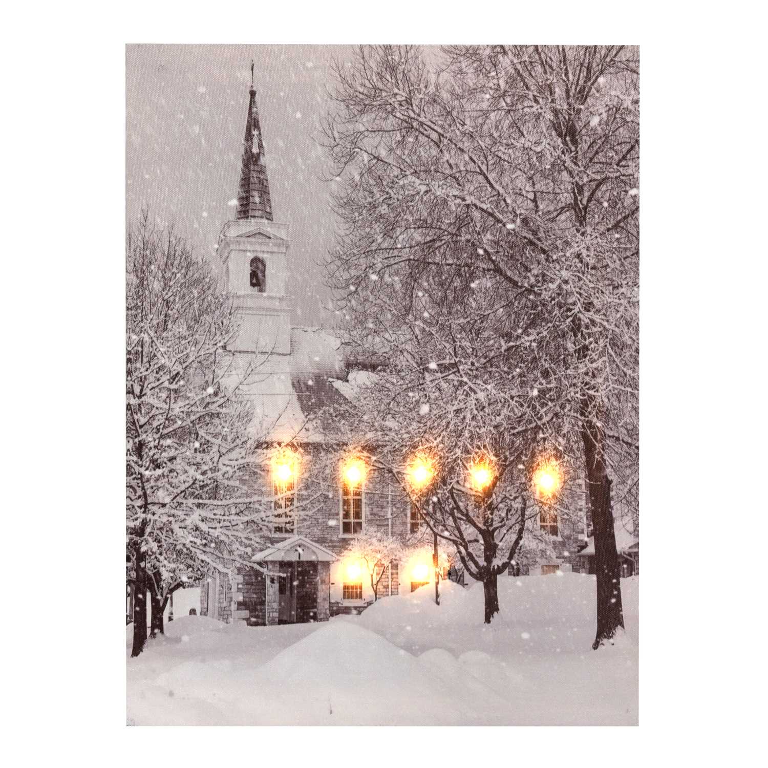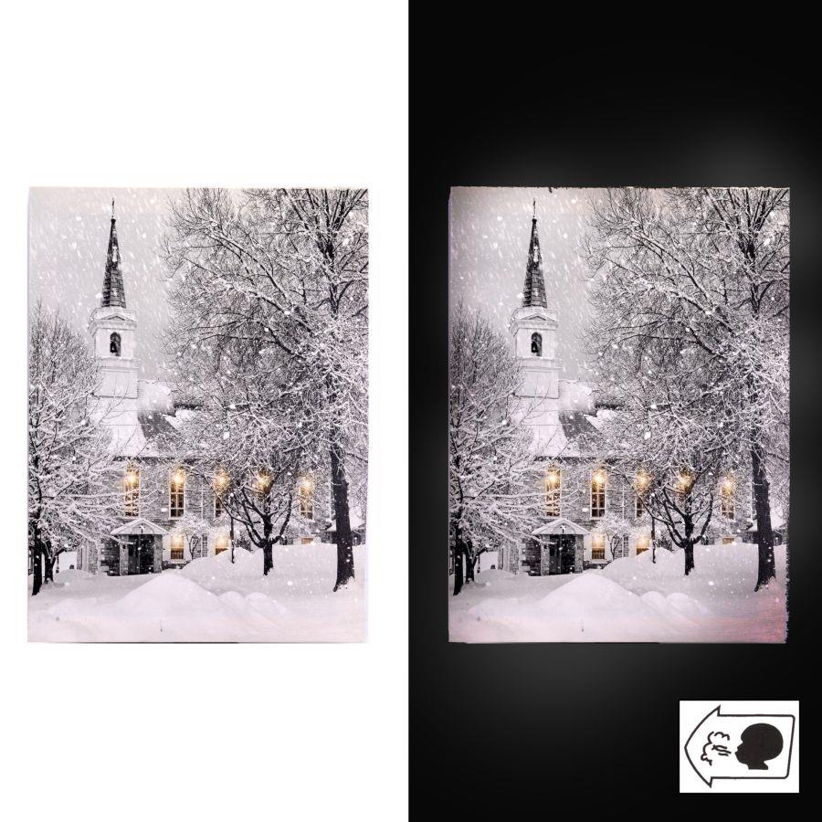 Quadro led legno paesaggio innevato multicolor rettangolare cm30x40h1,8n