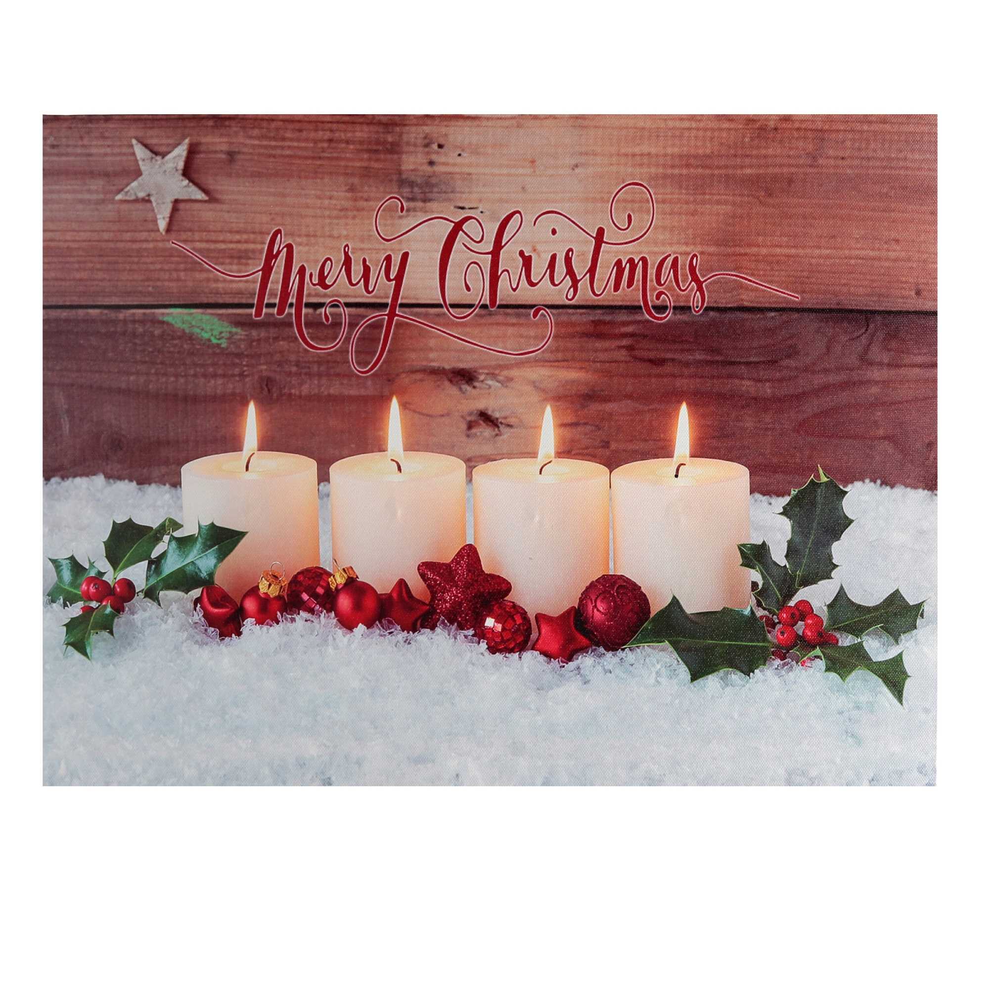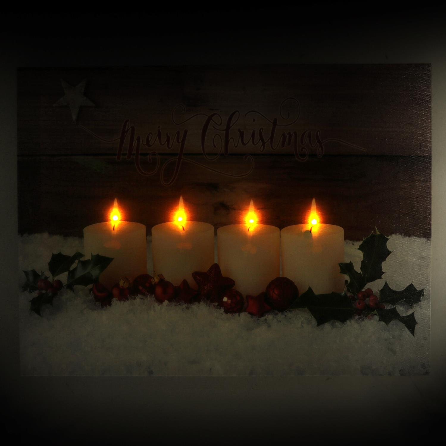 Quadro legno led candele bianche rettangolare cm40x30x1,8n