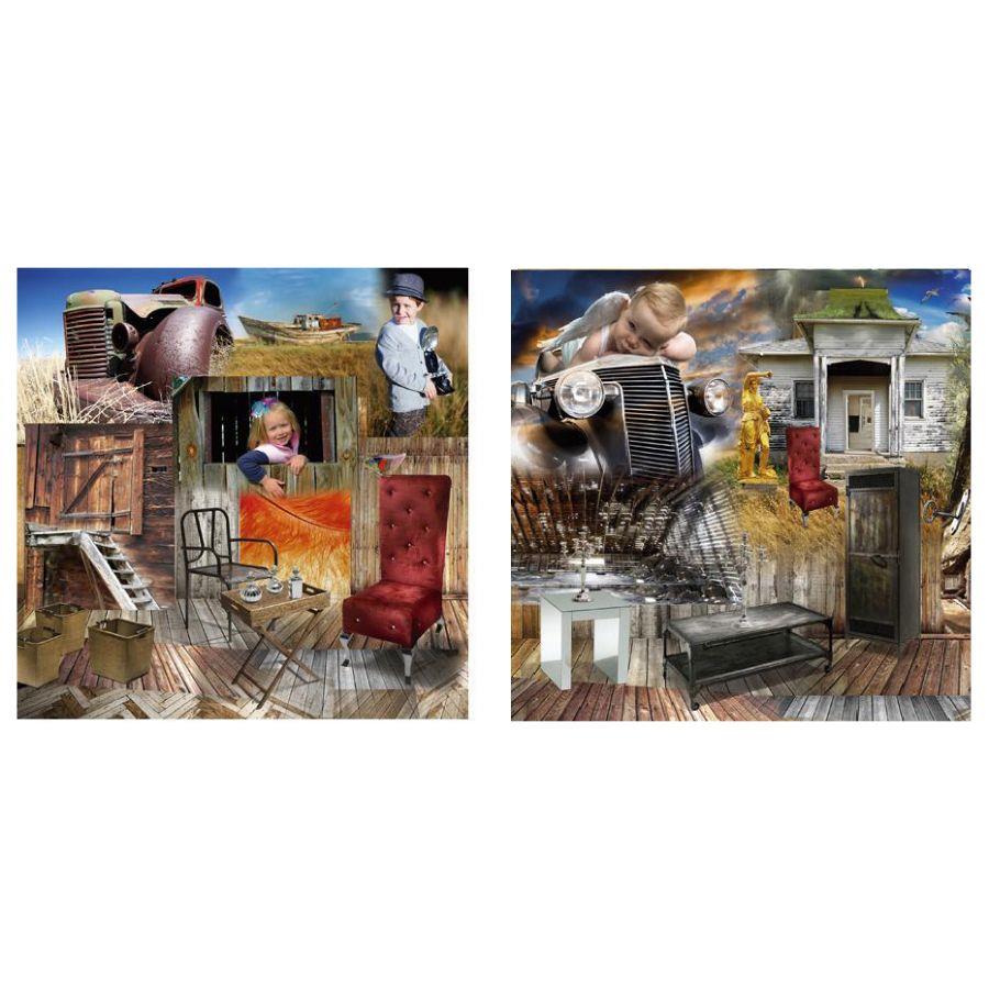 Quadro dipinto paesaggio dehors 2 assortiti cm60x90