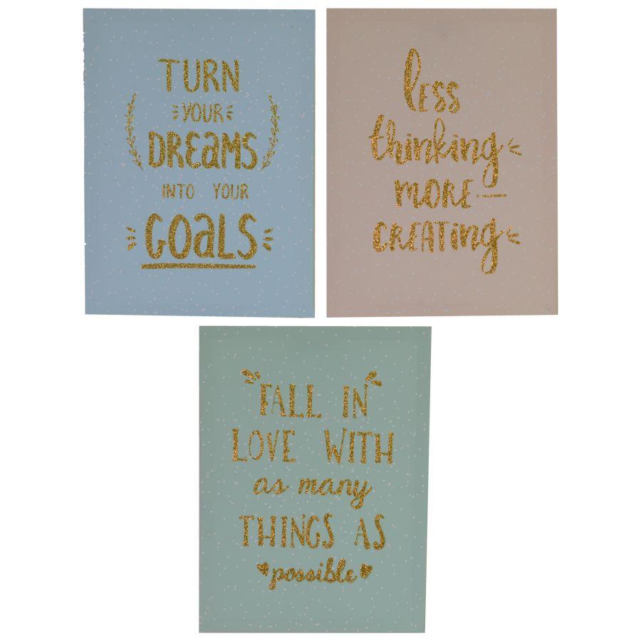 Quadro stampa scritte oro 3 assortiti cm30x40x1,5 quantità