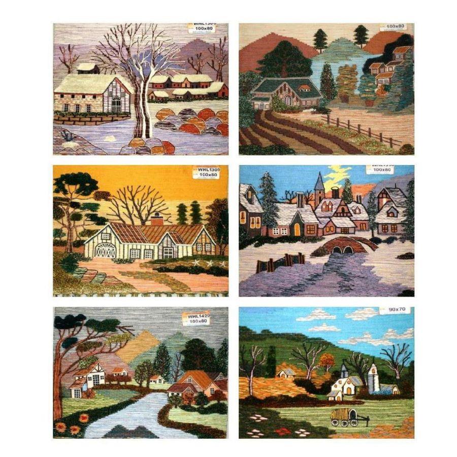 Quadro tessuto arazzo paesaggio montagna 6 assortiti cm70x90