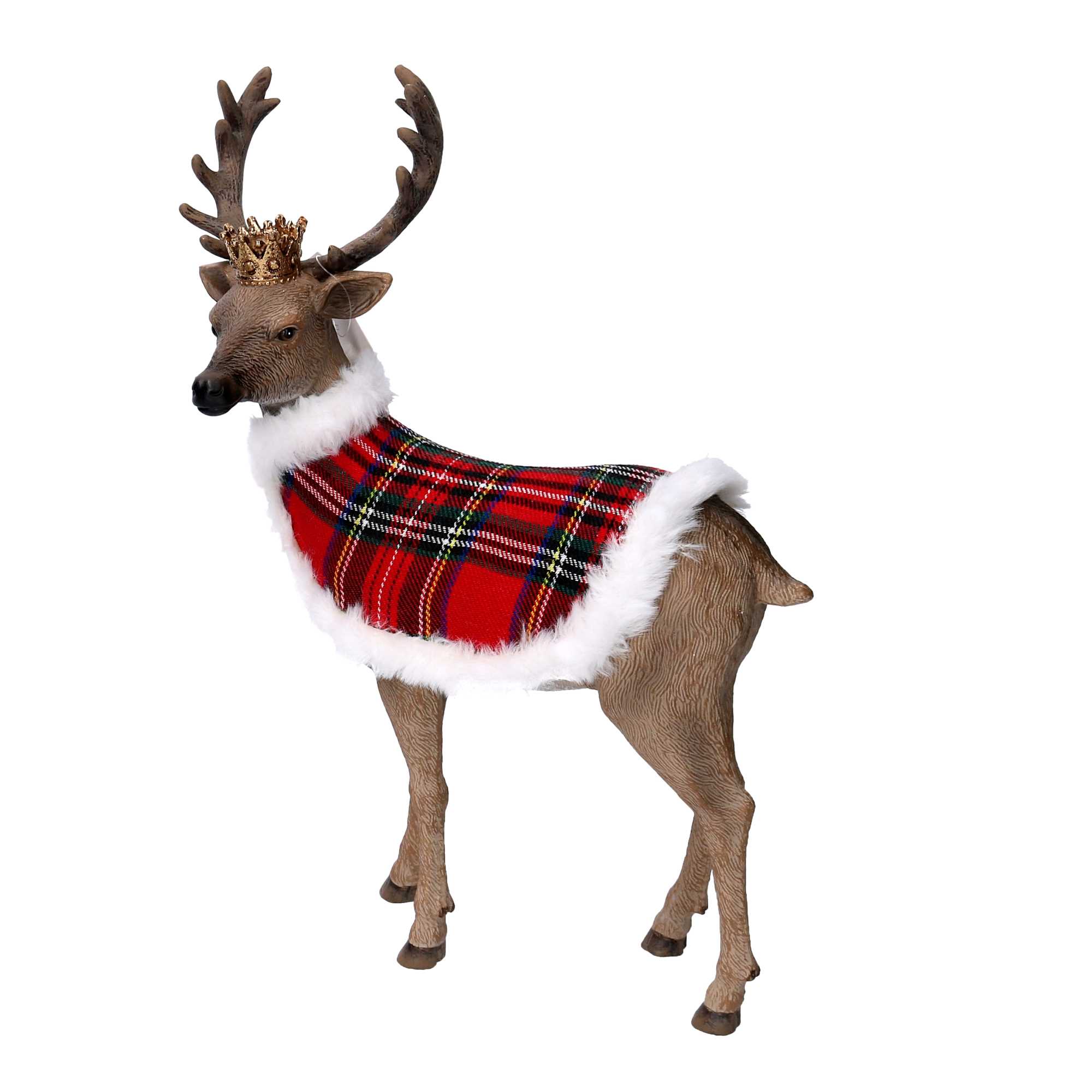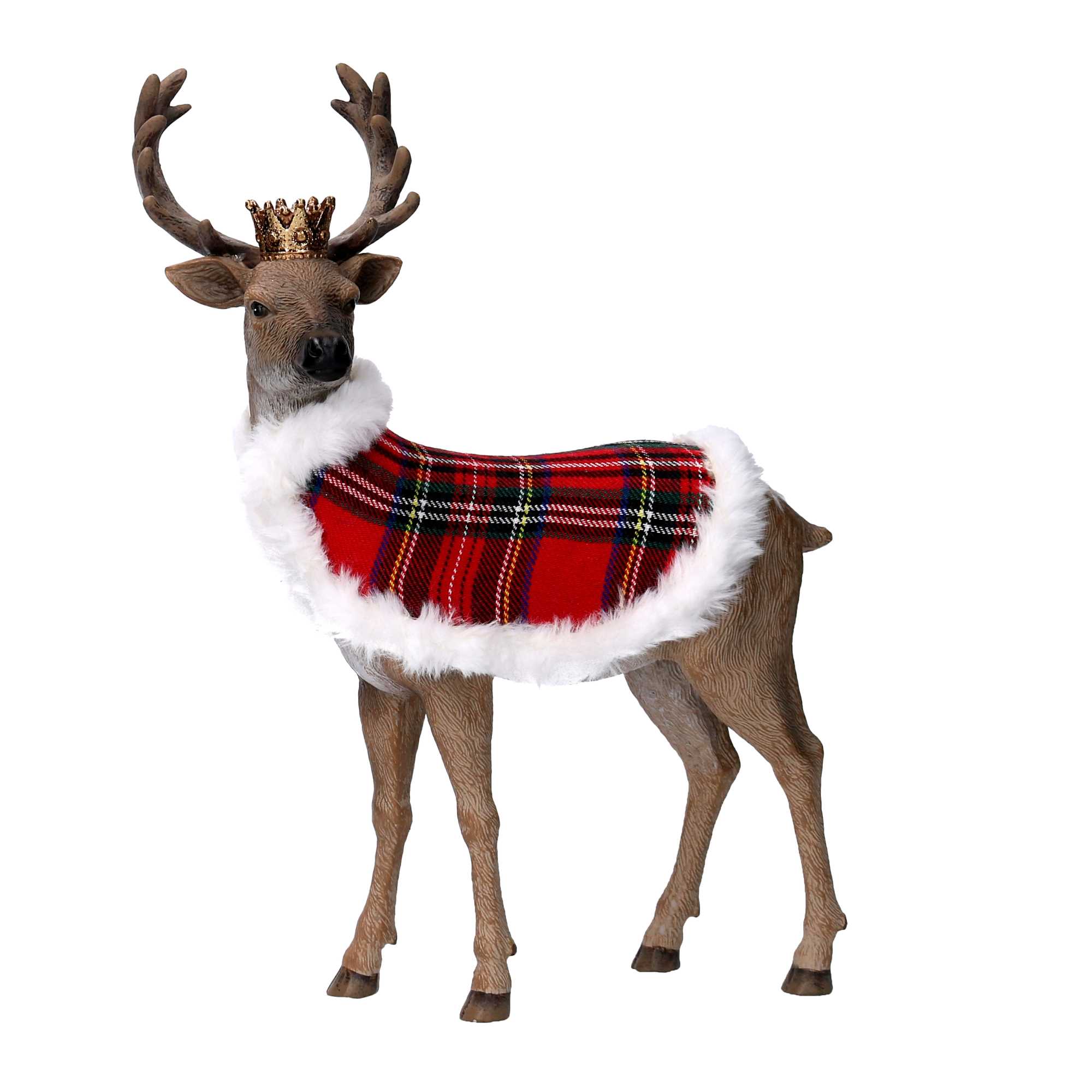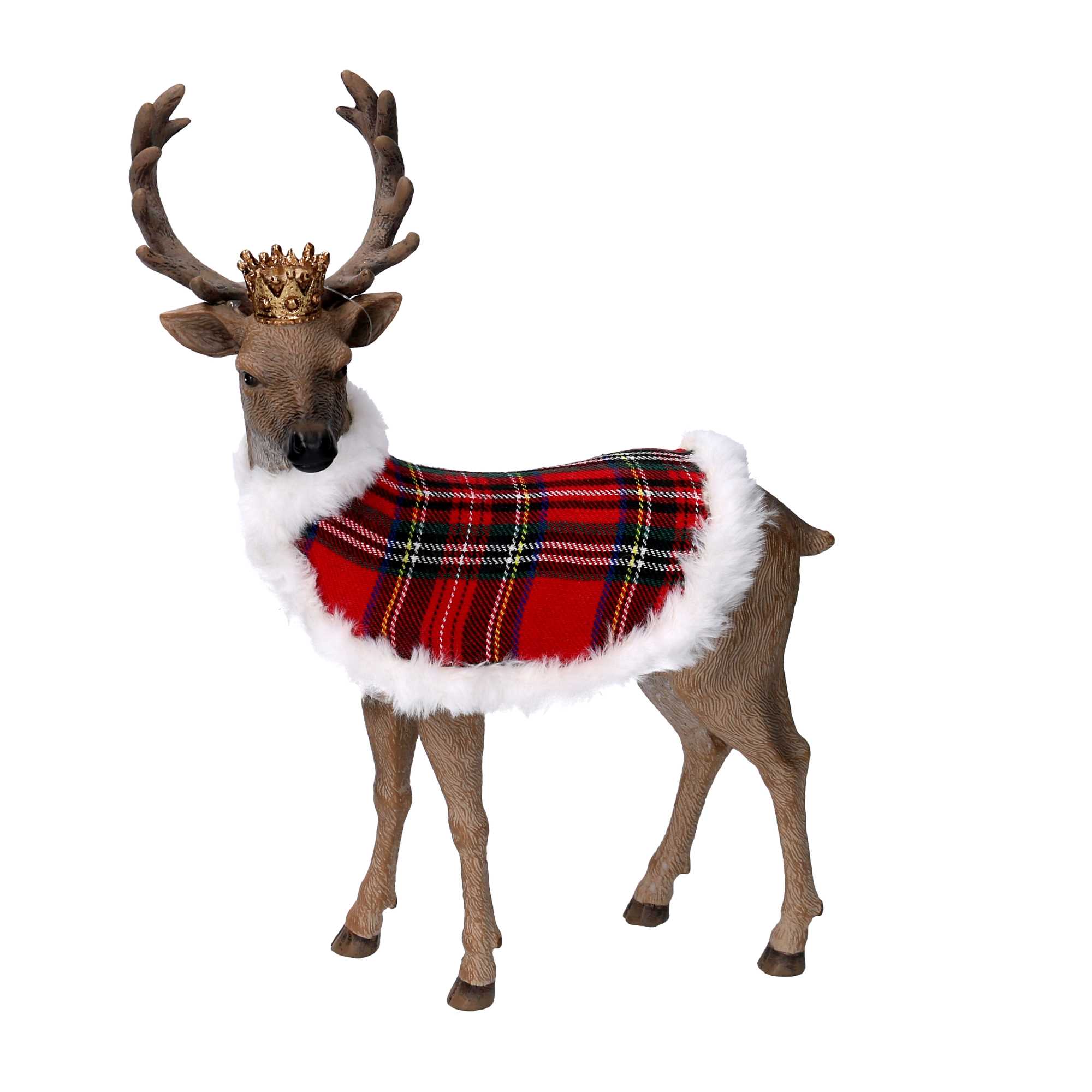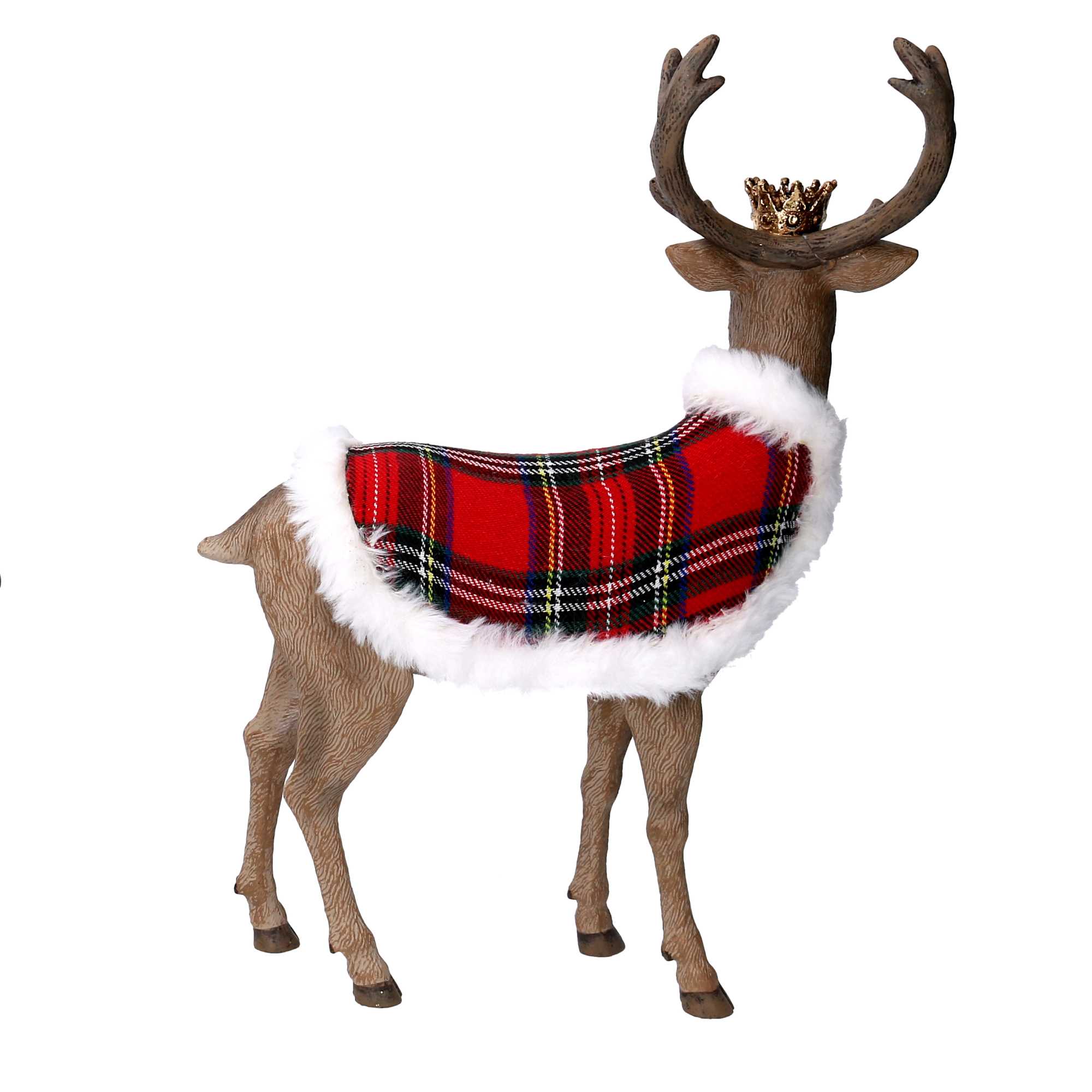 Renna resina con mantello scozzese e corona naturale cm25,8×12,1h34,8