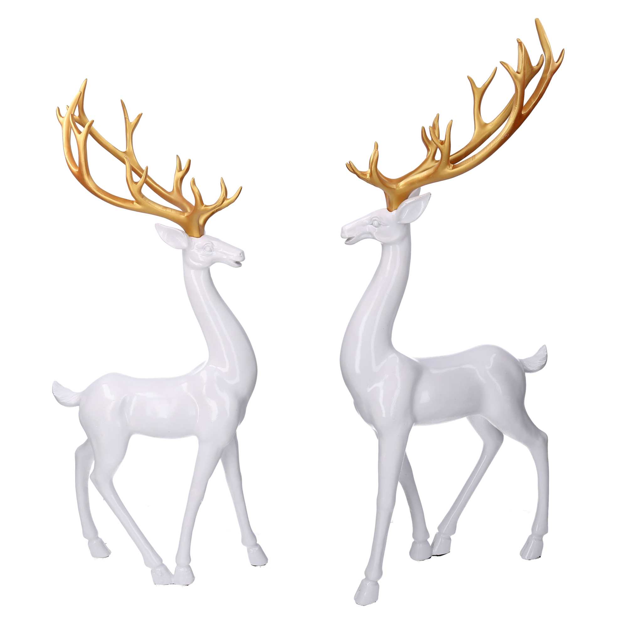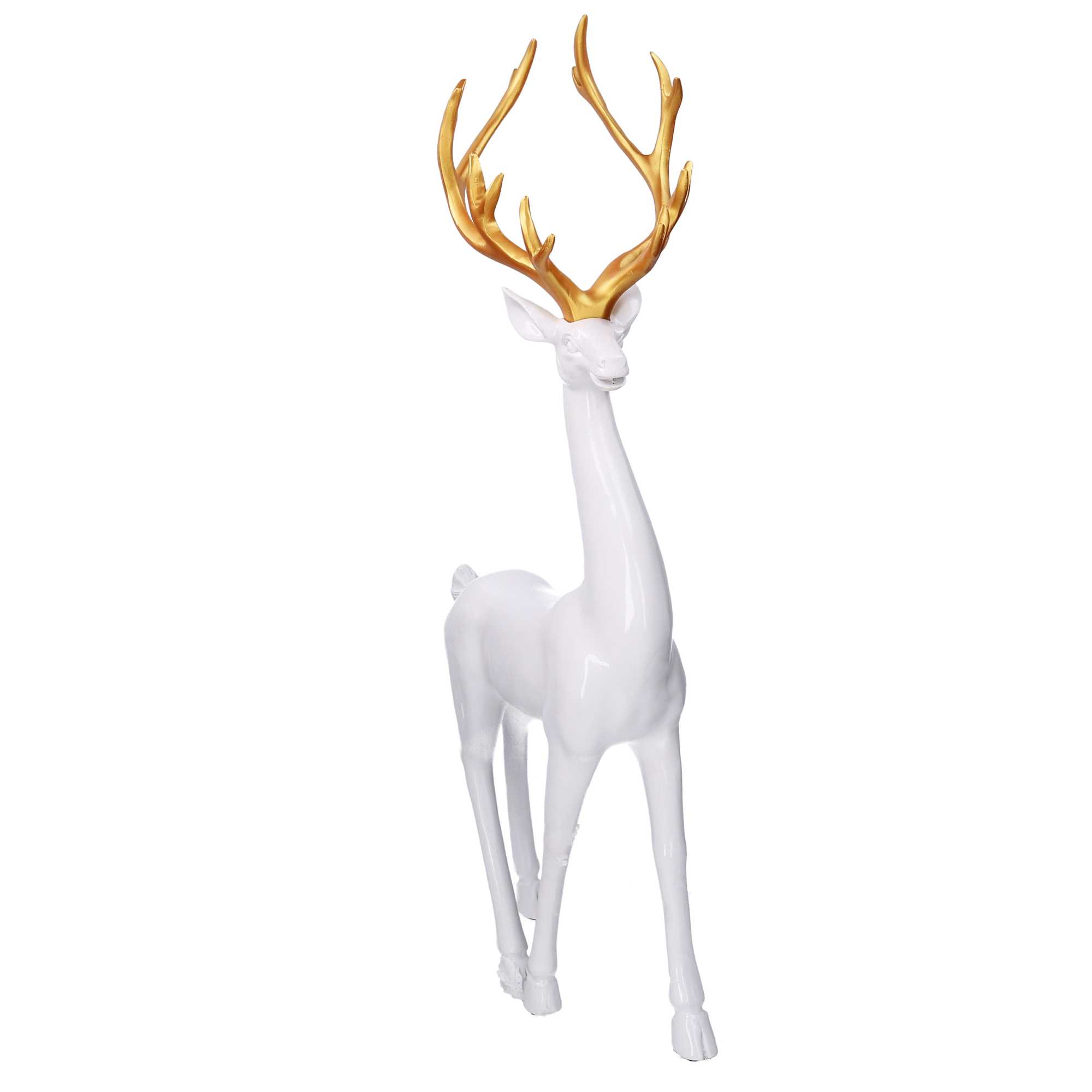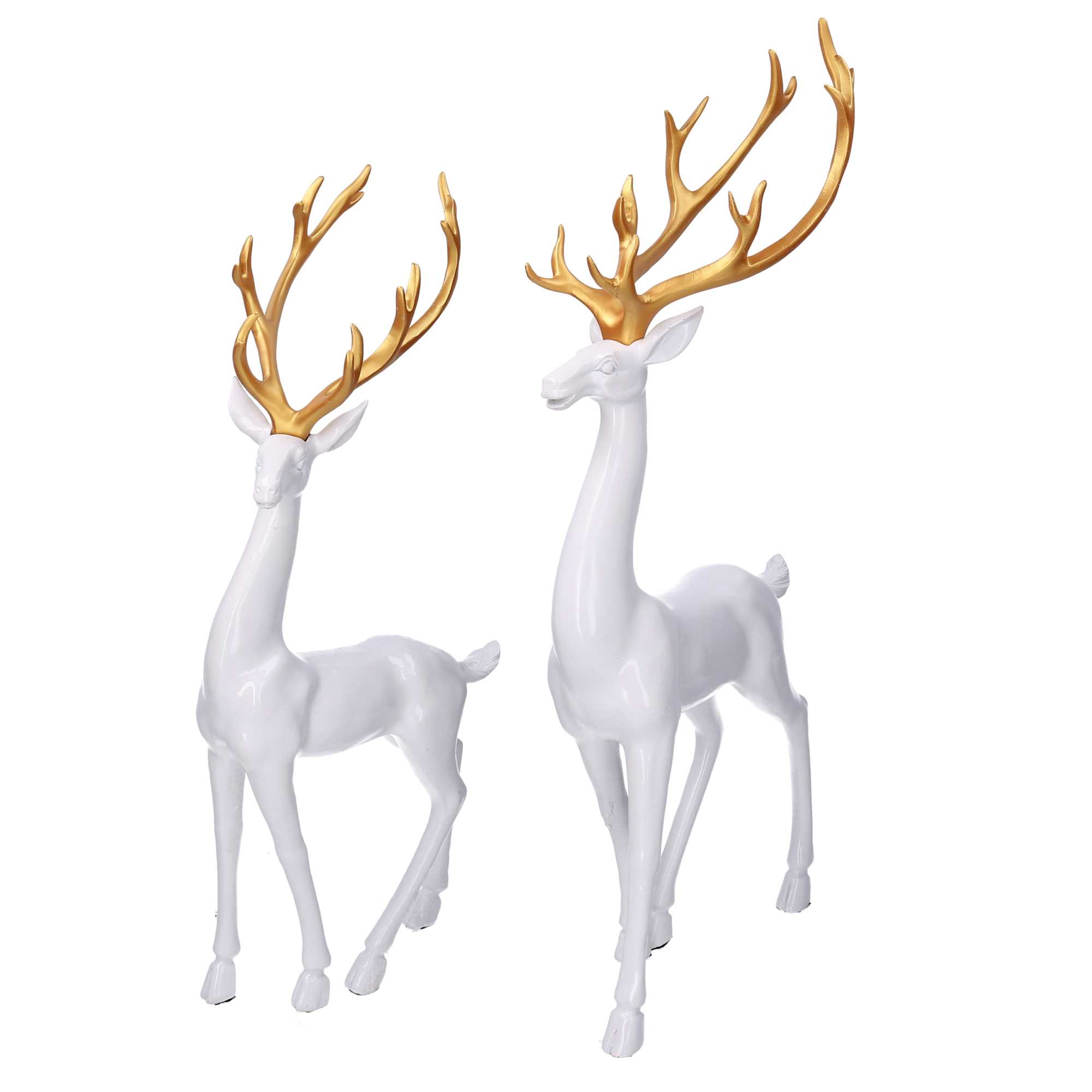 Renna resina coppia 2 pz bianco e oro cm30h69n