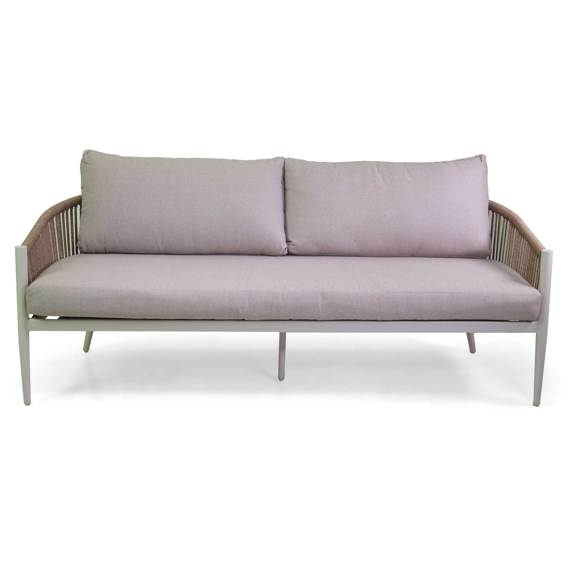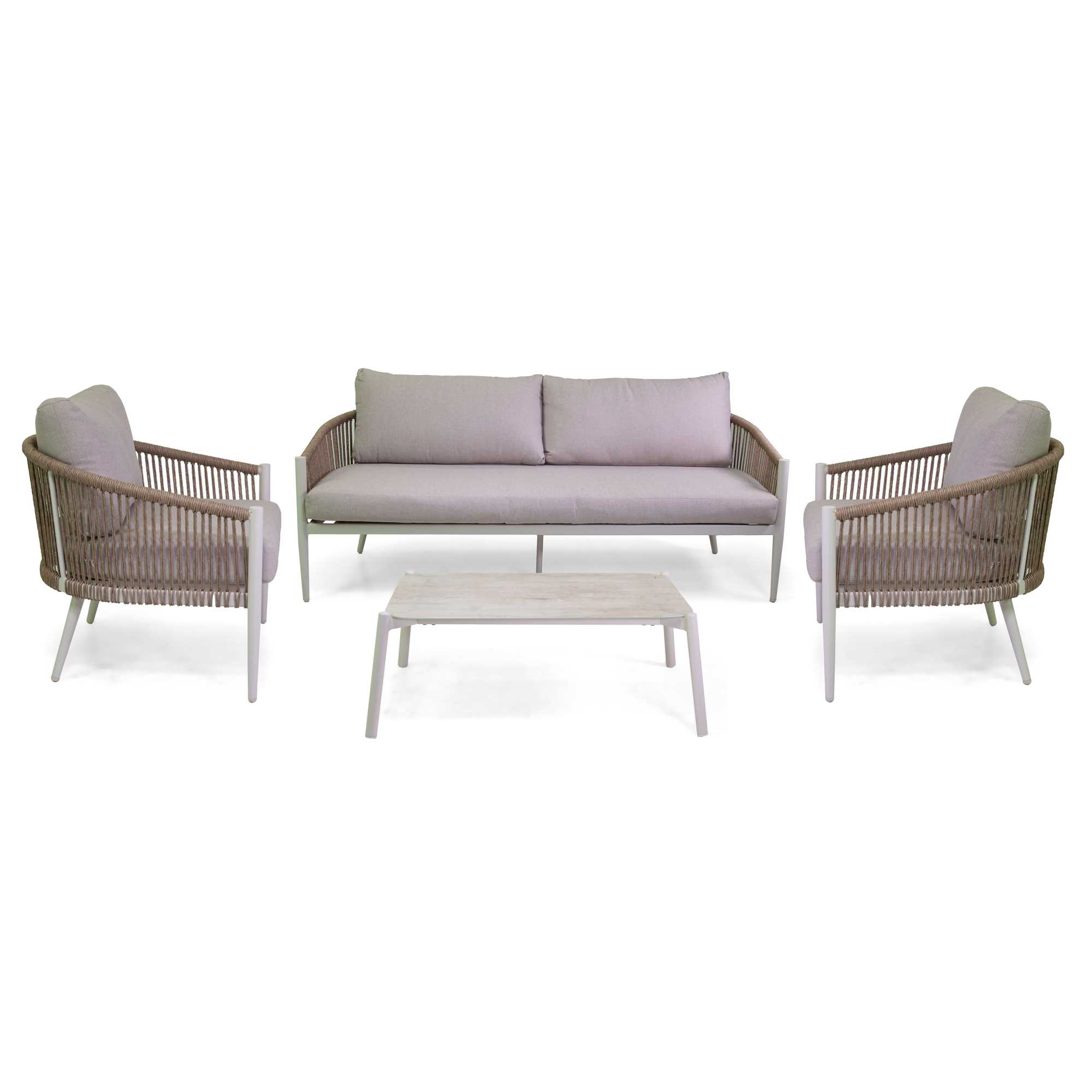 Struttura in alluminio verniciato a polvere colore bianco con corda in polyrattan wicker intrecciato 5mm colore vimini naturale.