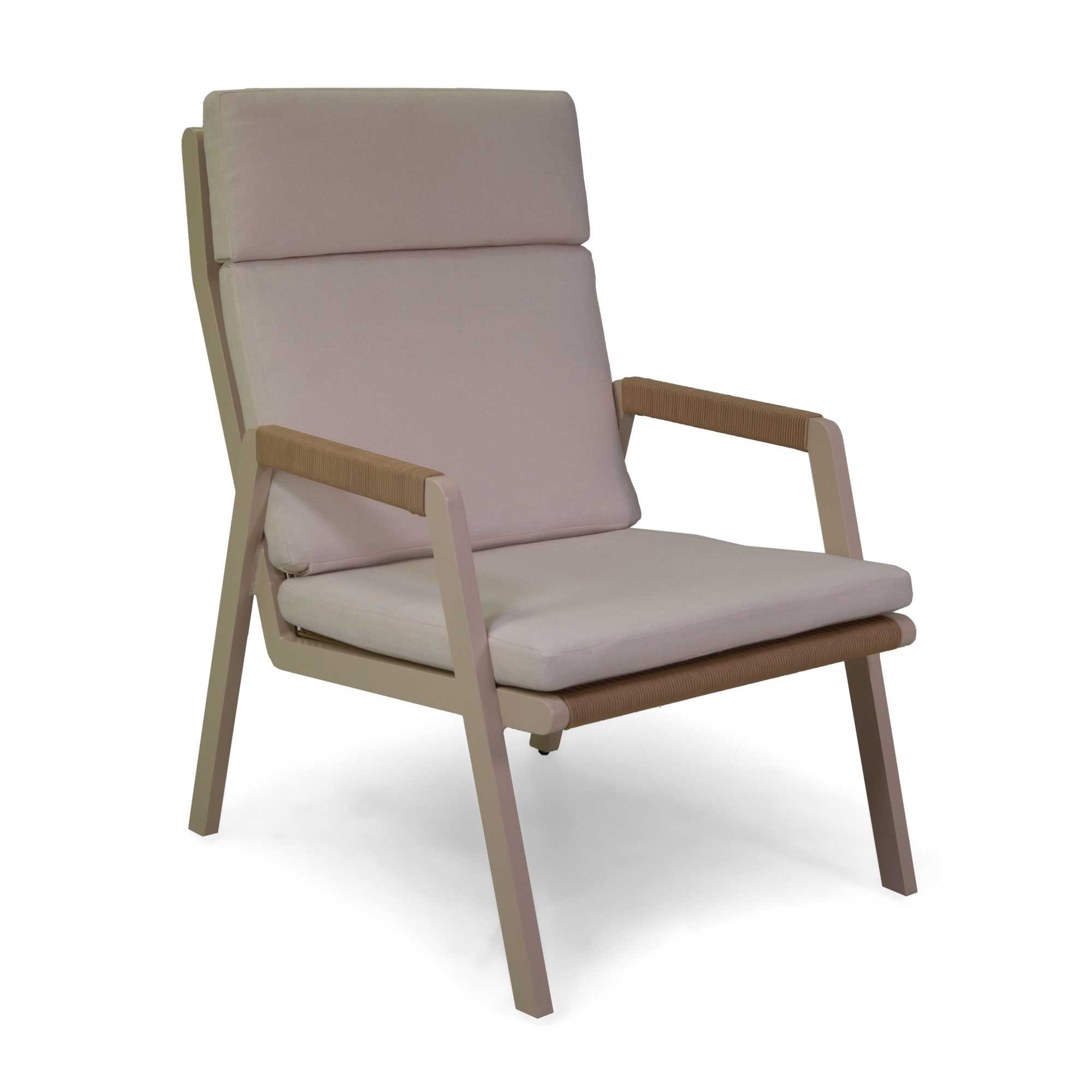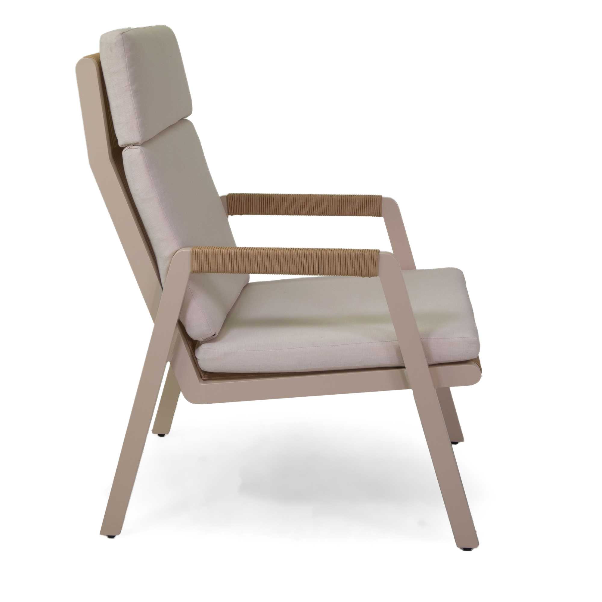 Schienale e braccioli in corda tonda spessore 4.0mm colore beige.