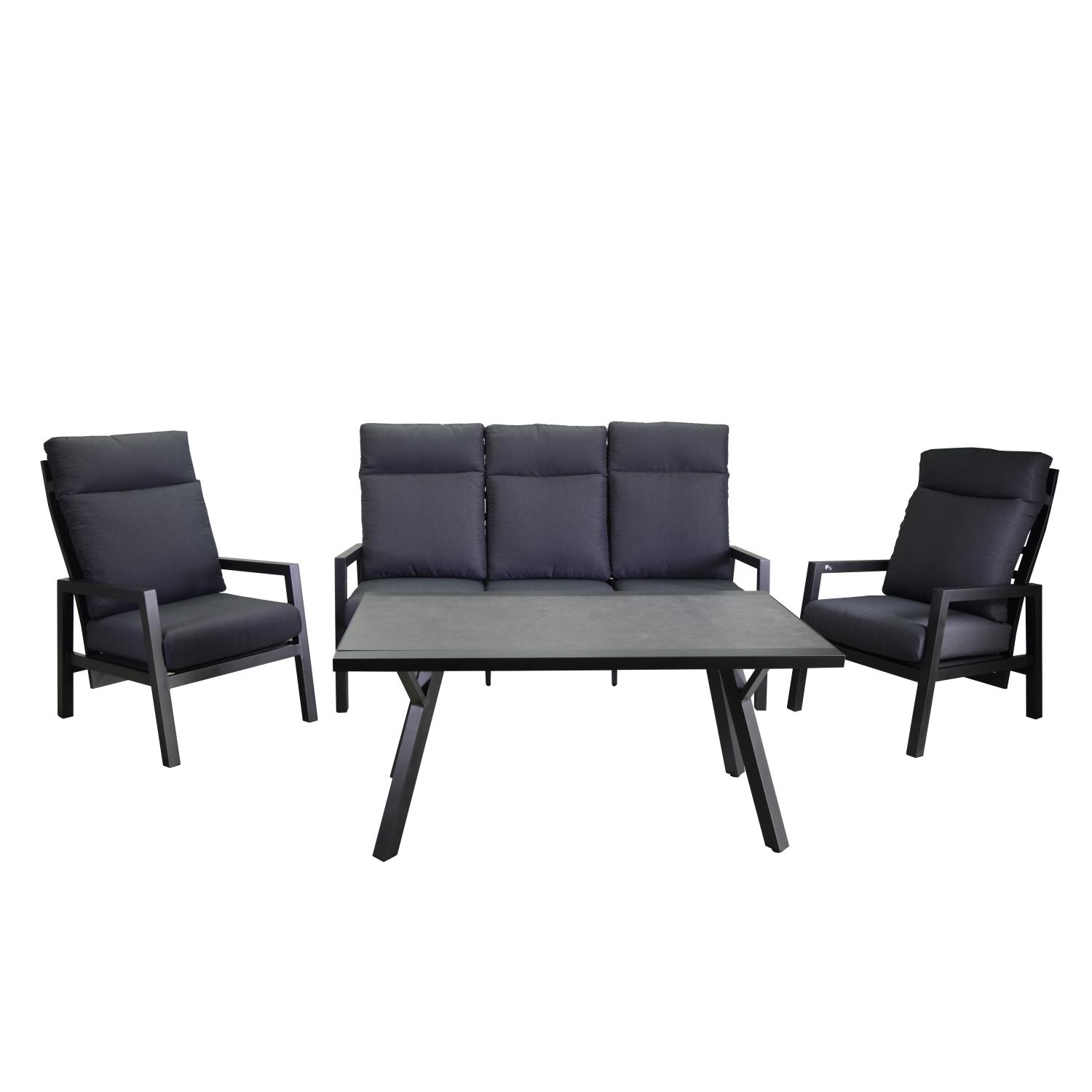 Salotto alluminio Frisco antracite c/cuscini nero 4 pezzi