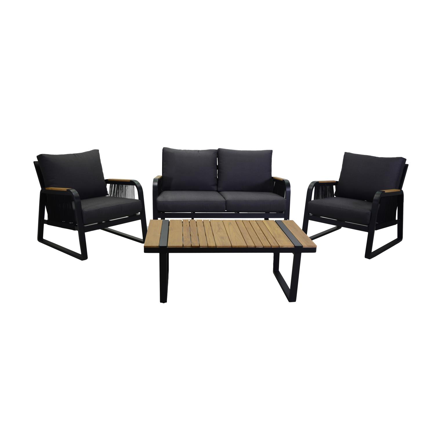 Salotto alluminio Idaho corda 2p antracite c/cuscini grigio + top legnon