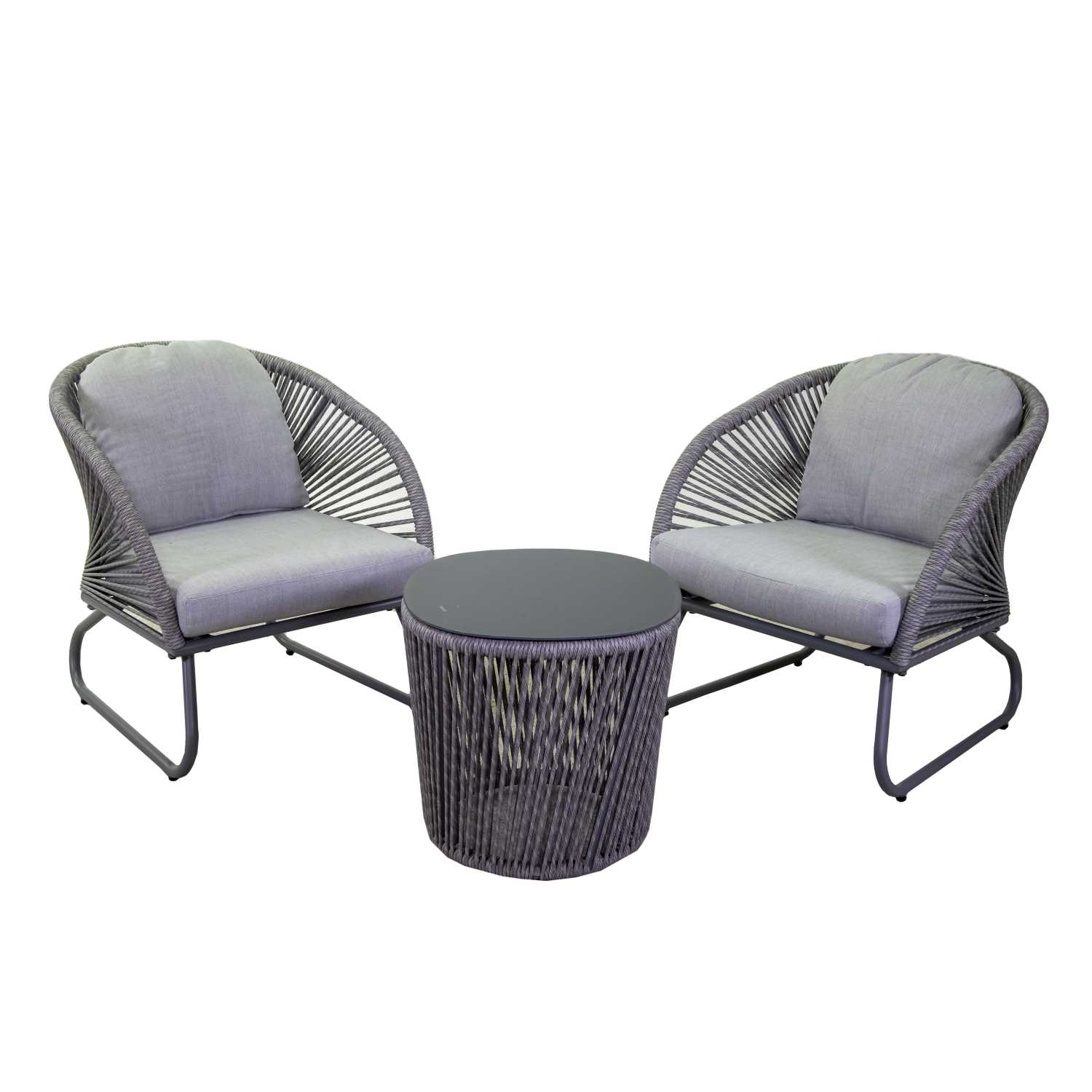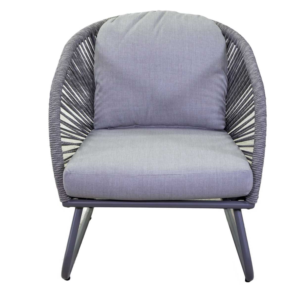 - Cuscini seduta e schienale idrorepellenti in Olefina color grigio, spessore 10 cm