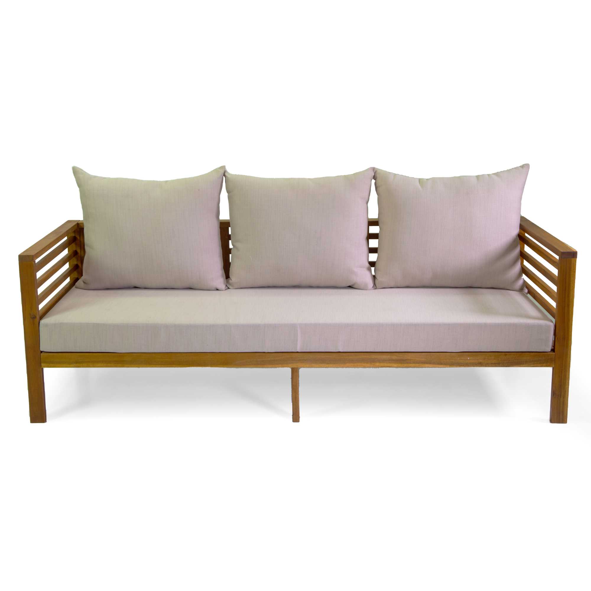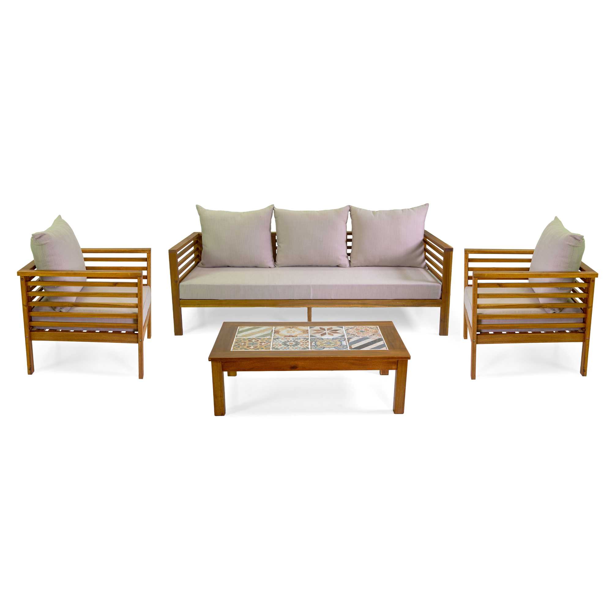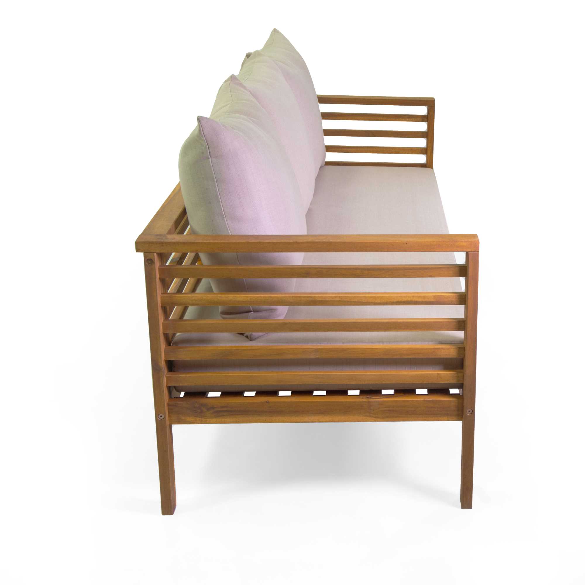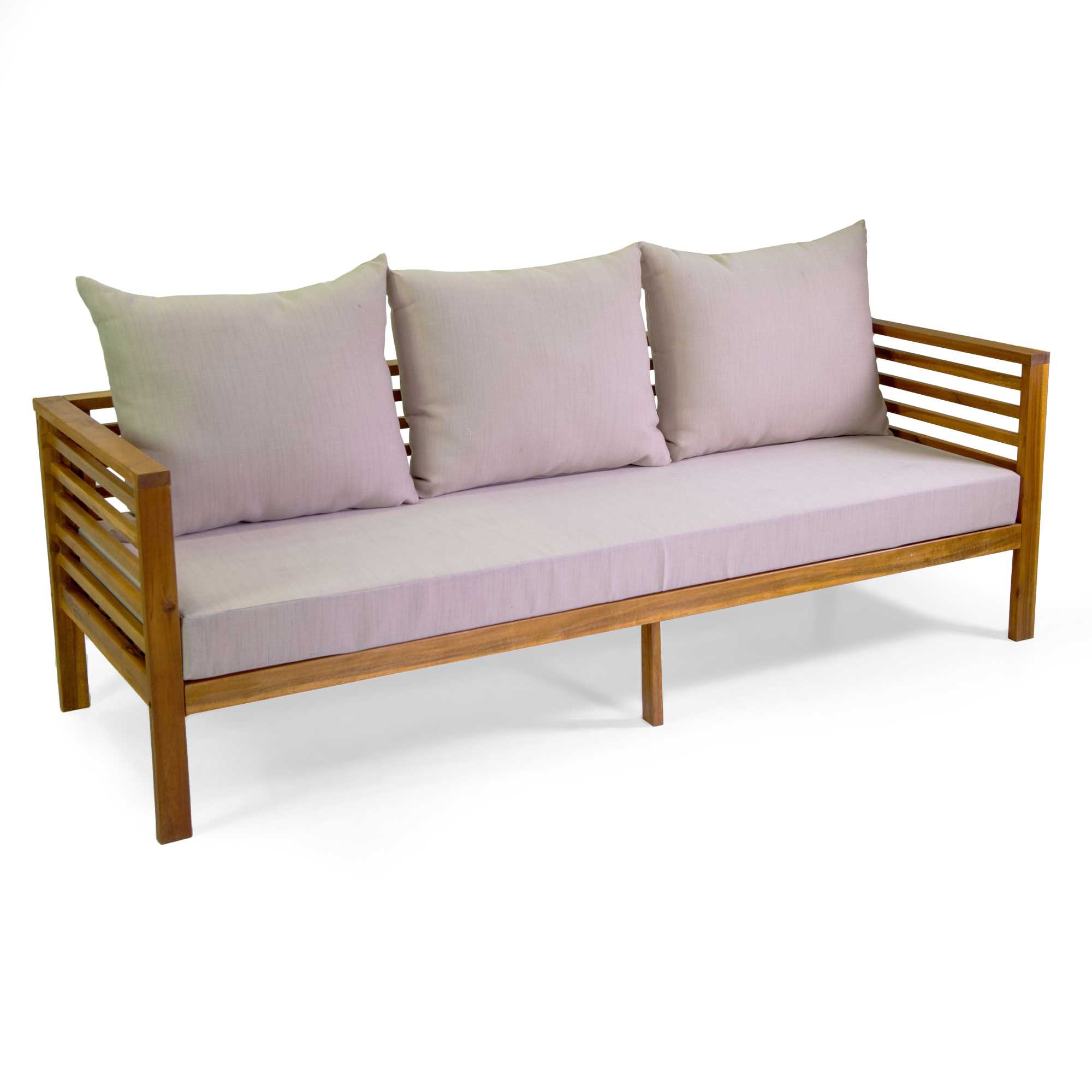 Salotto legno Miramar naturale 3 posti con cuscini sabbian