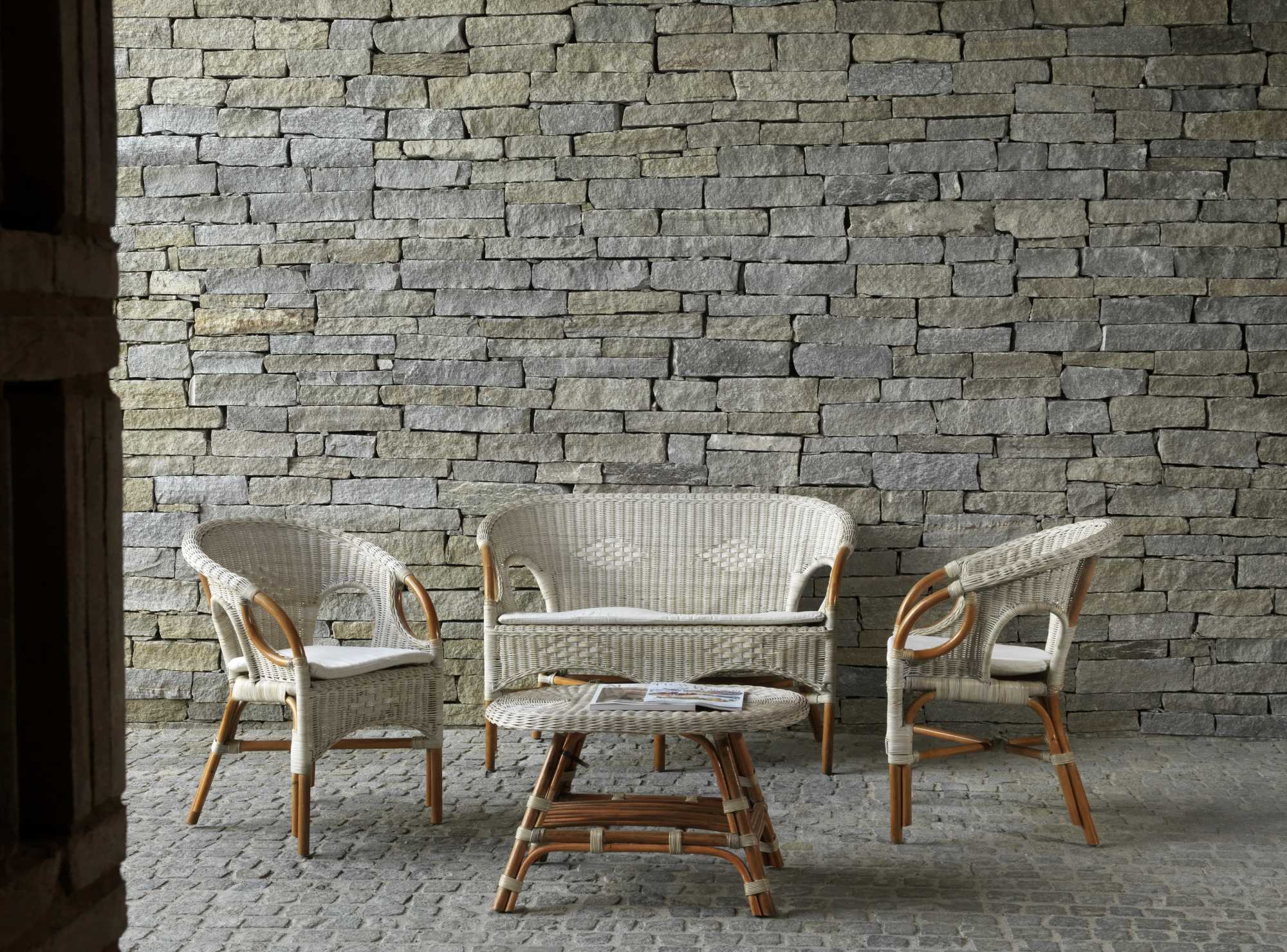 Salotto realizzato in rattan intrecciato. Il rattan è il nome usato per indicare diverse specie di palma e giunchi. Con il loro legno si fabbricano mobili, bastoni, ombrelli e altri lavori di intreccio. Anche la liana tropicale, malacca, viene utilizzata come materia prima per i lavori di artigianato e viene comunemente assimilata al rattan pur essendo di origine differente. Vi sono vari tipi di lavorazione del rattan derivanti dall’utilizzo di diversi tipi di materiali.