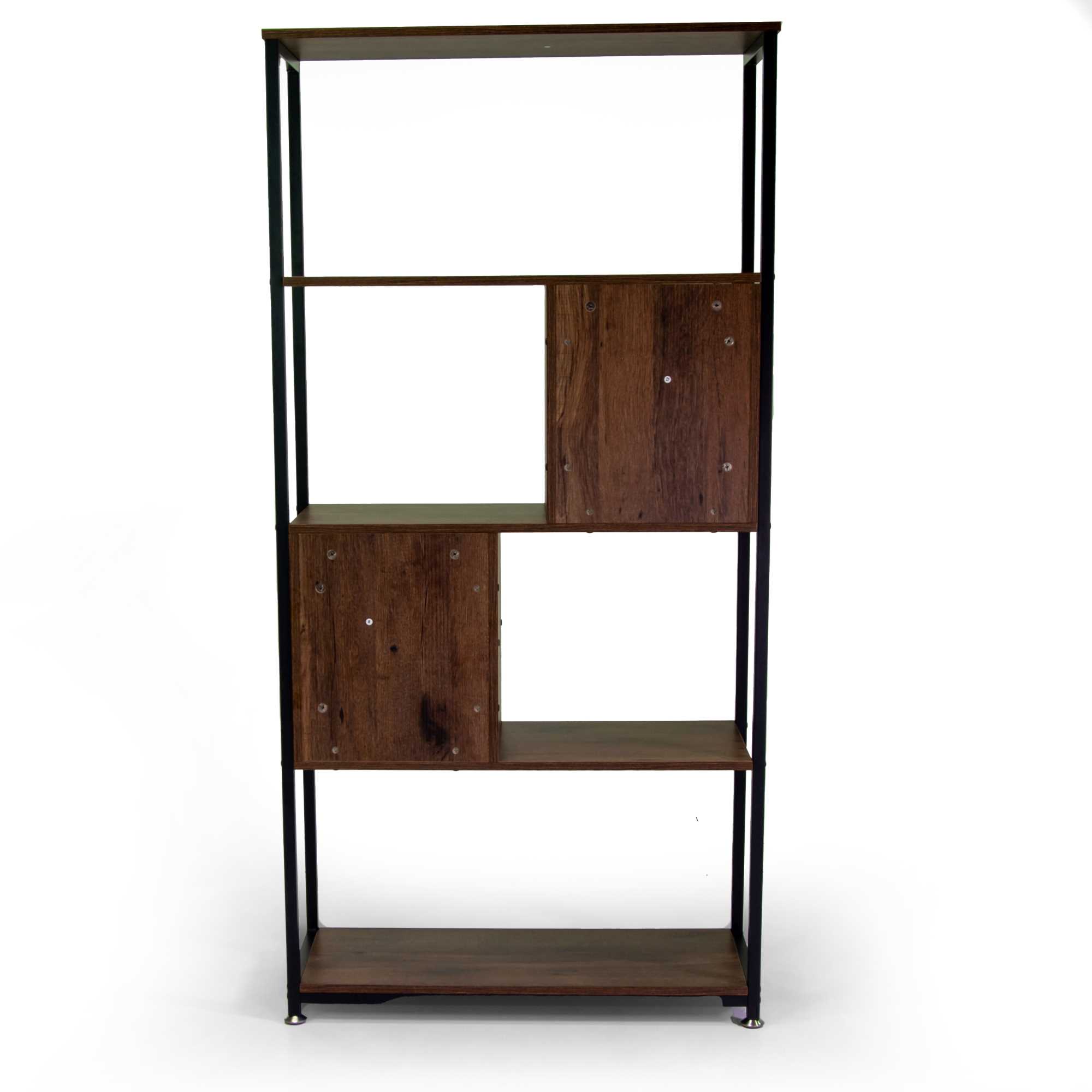 Scaffale Mudra 4piani+2cassetti+1anta legno noce e nero smontato cm78x30h158n