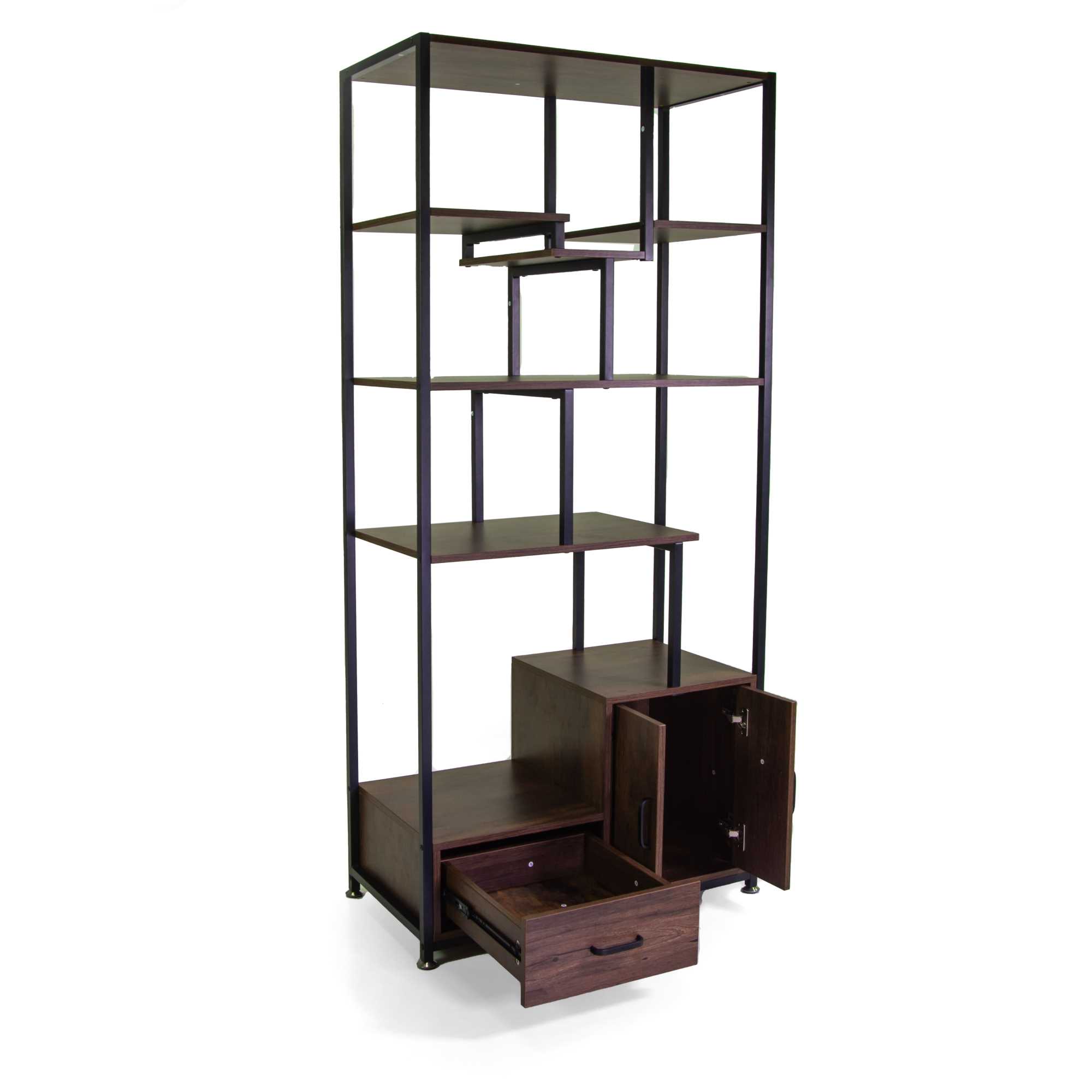 Scaffale Mudra 7piani+1cassetto+2ante legno noce e nero smontato cm80x40h175n