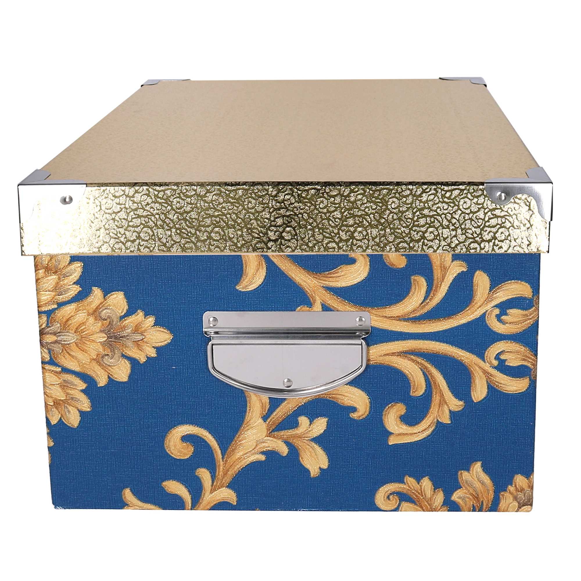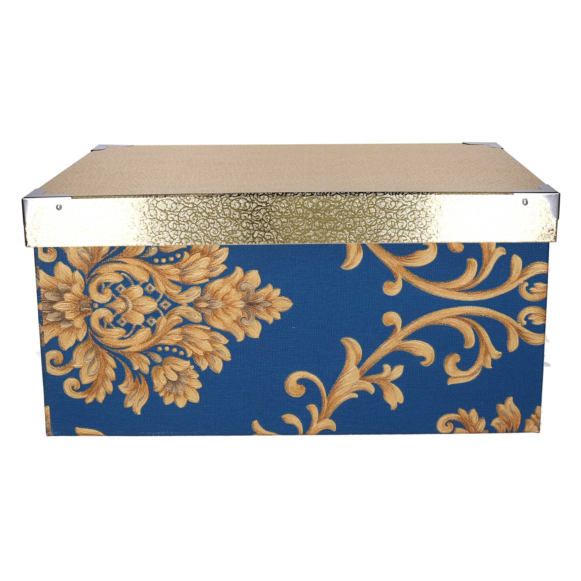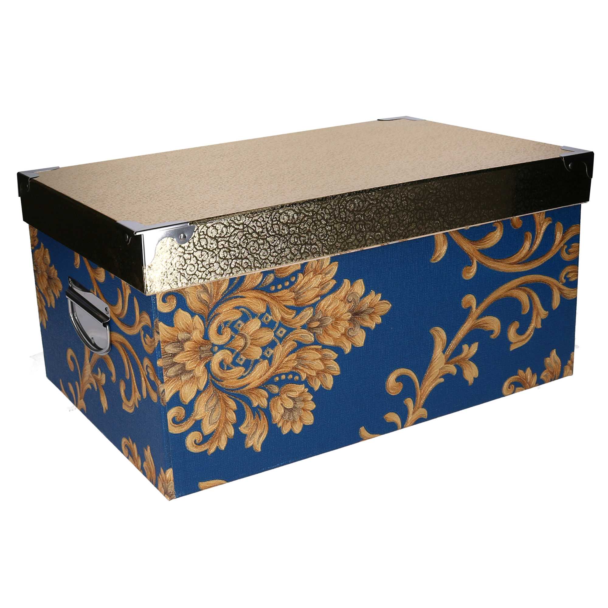 - Scatola cartone 9^ blu copechio oro rettangolare cm47x32,5h23,5