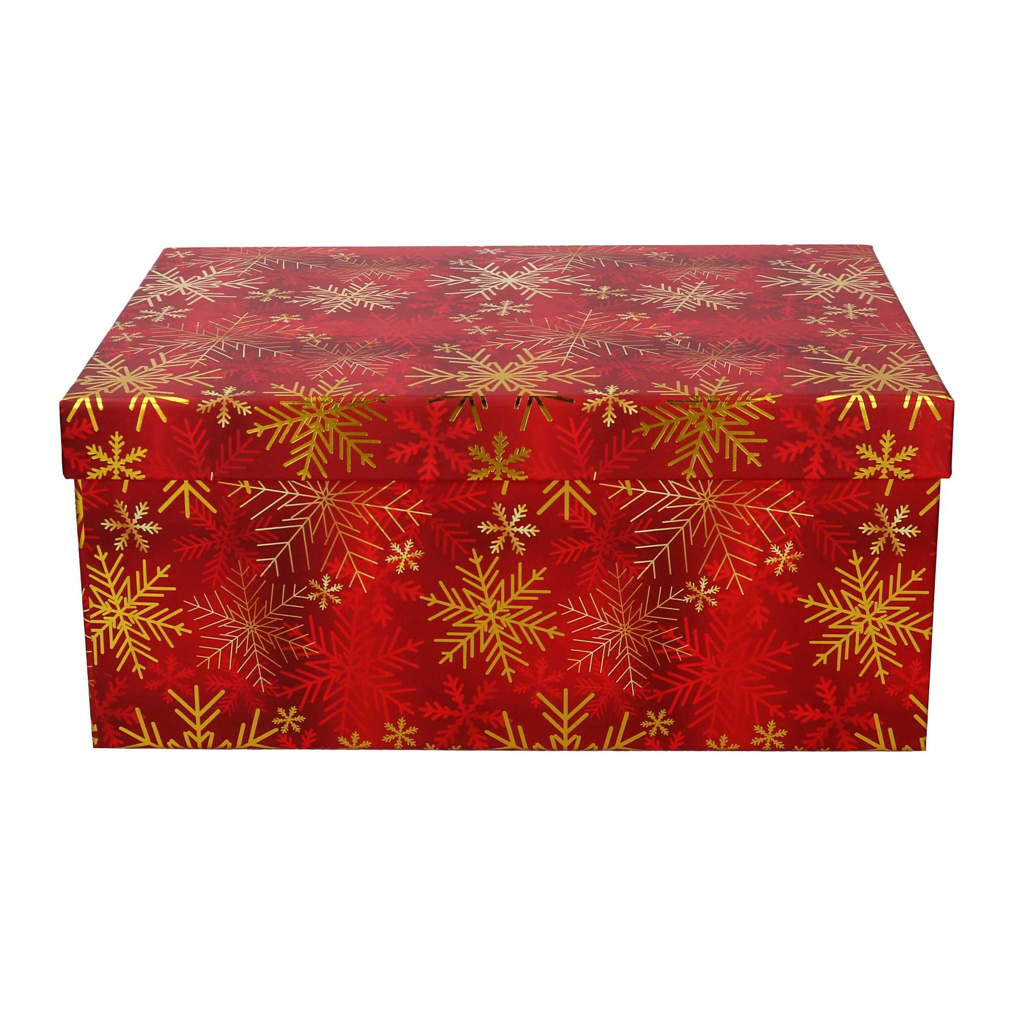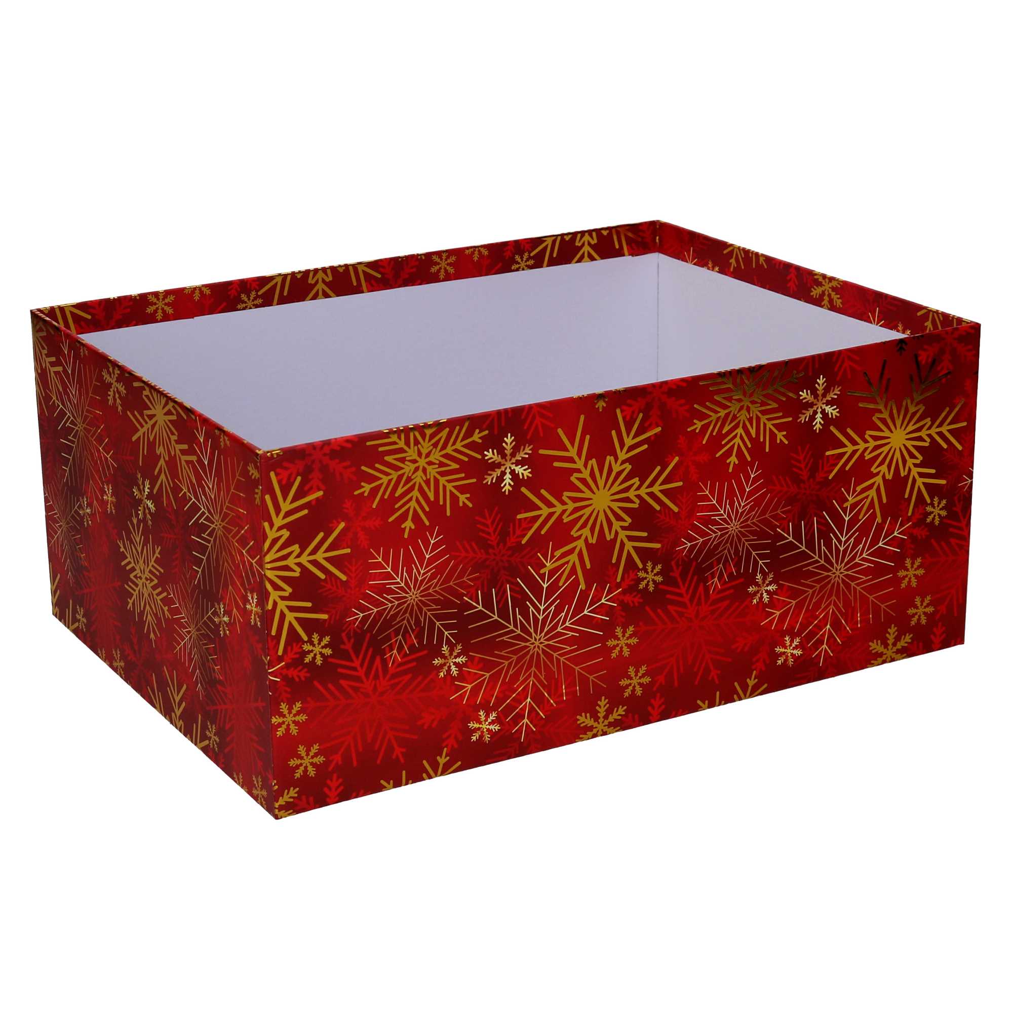 - Scatola cartone 10^ fiocchi di neve rosso rettangolare cm37,5x29h16
