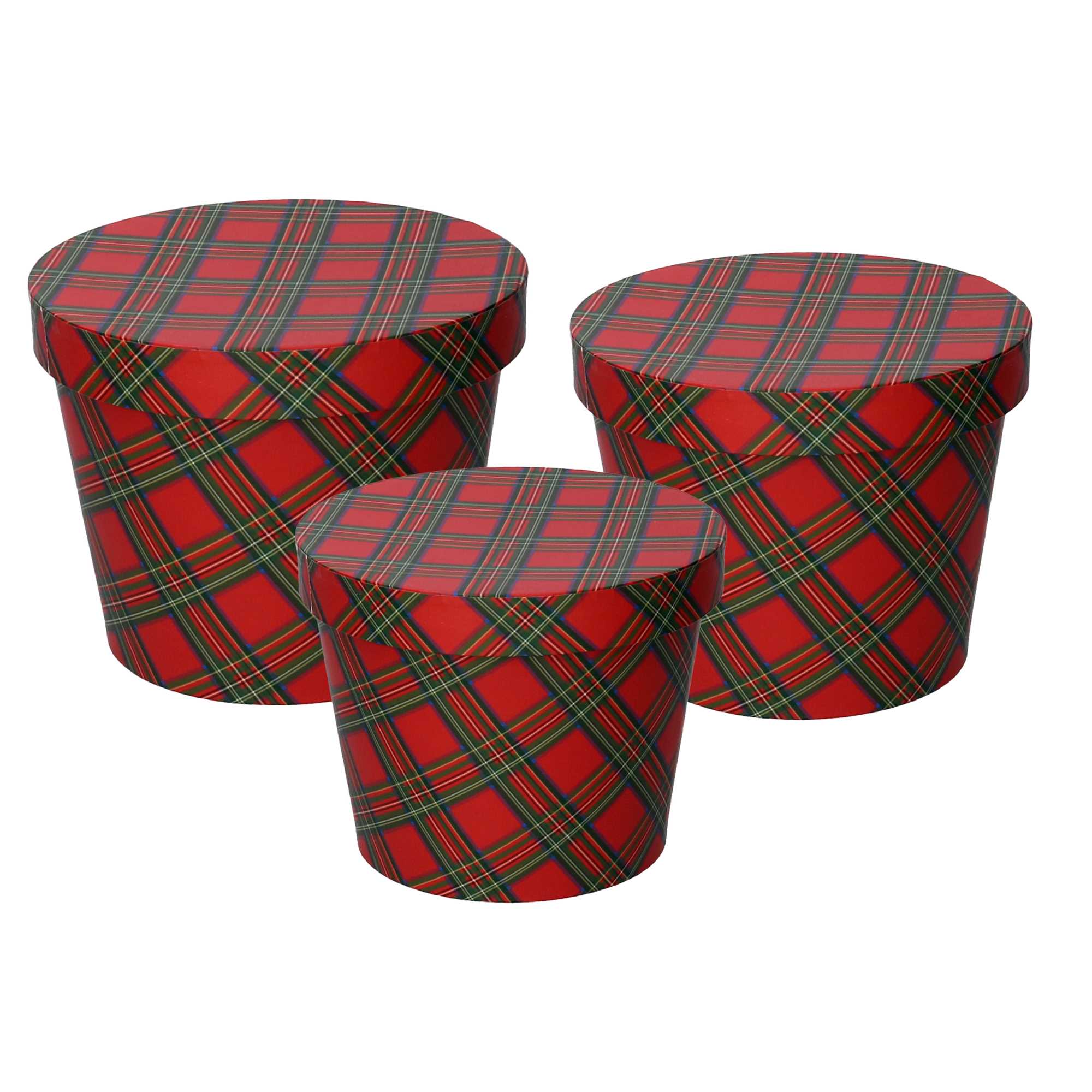 Scatola cartone 1-3 rosso scozzese tondo cm ø17,8h14