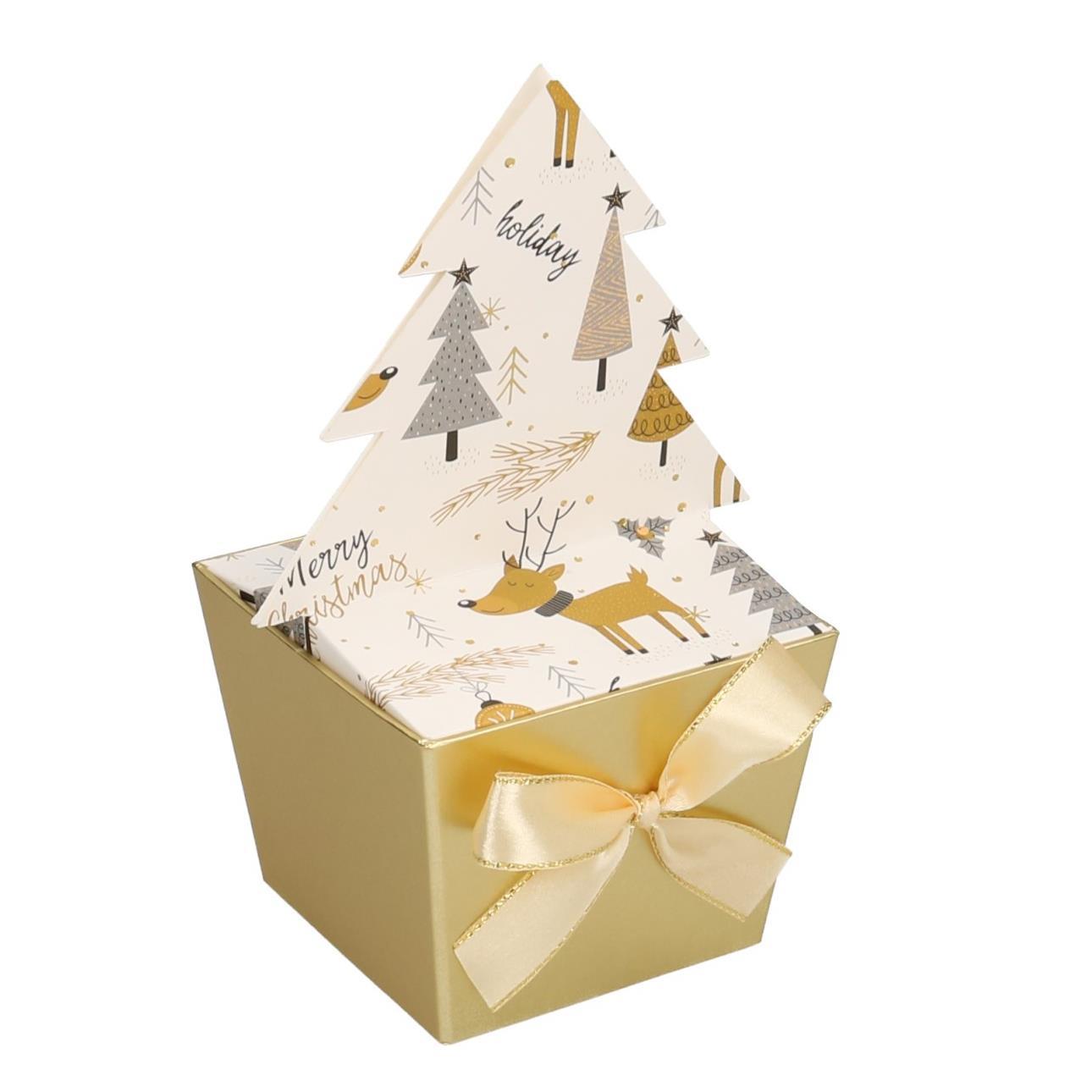 Scatola cartone oro bianco albero quadro cm10,3×10,3h8