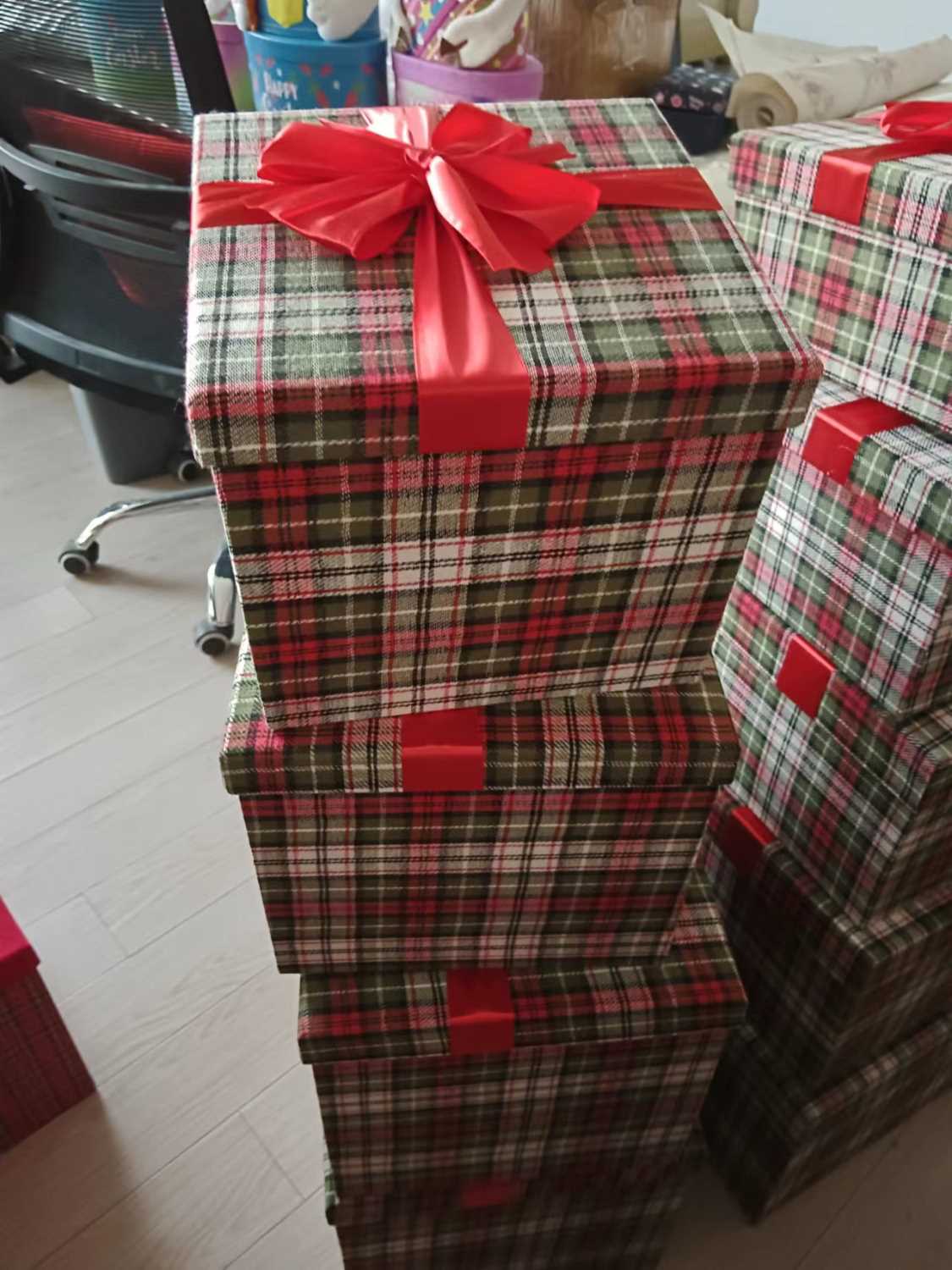 - Scatola cartone scozzese 2^ verde e rosso quadra cm25x25h21,5