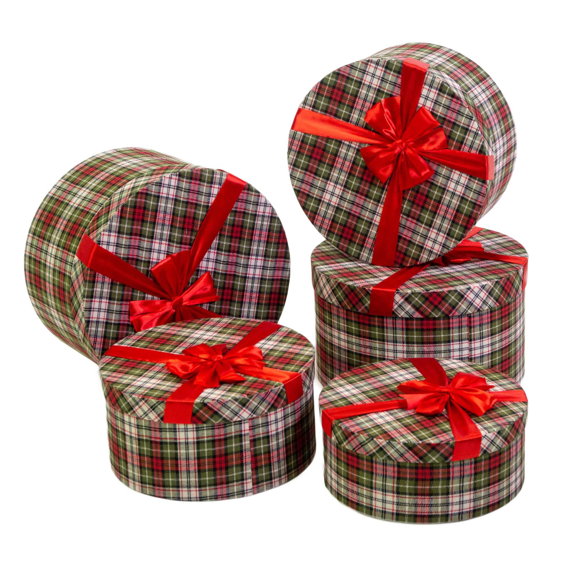 - Scatola cartone scozzese 1-5 verde e rosso tonda cm ø39,5h24,5