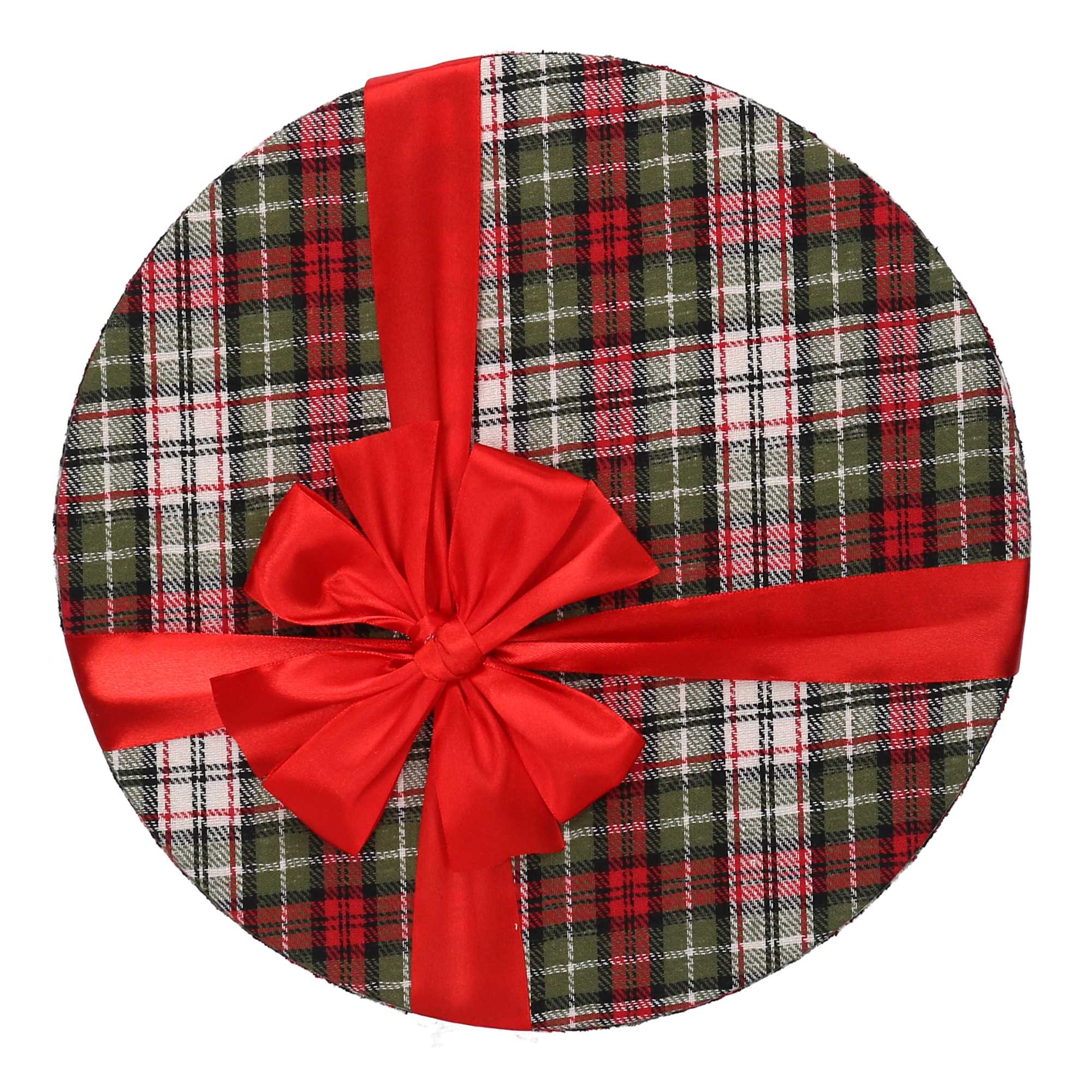 - Scatola cartone scozzese 2^ verde e rosso tonda cm ø32,5h16