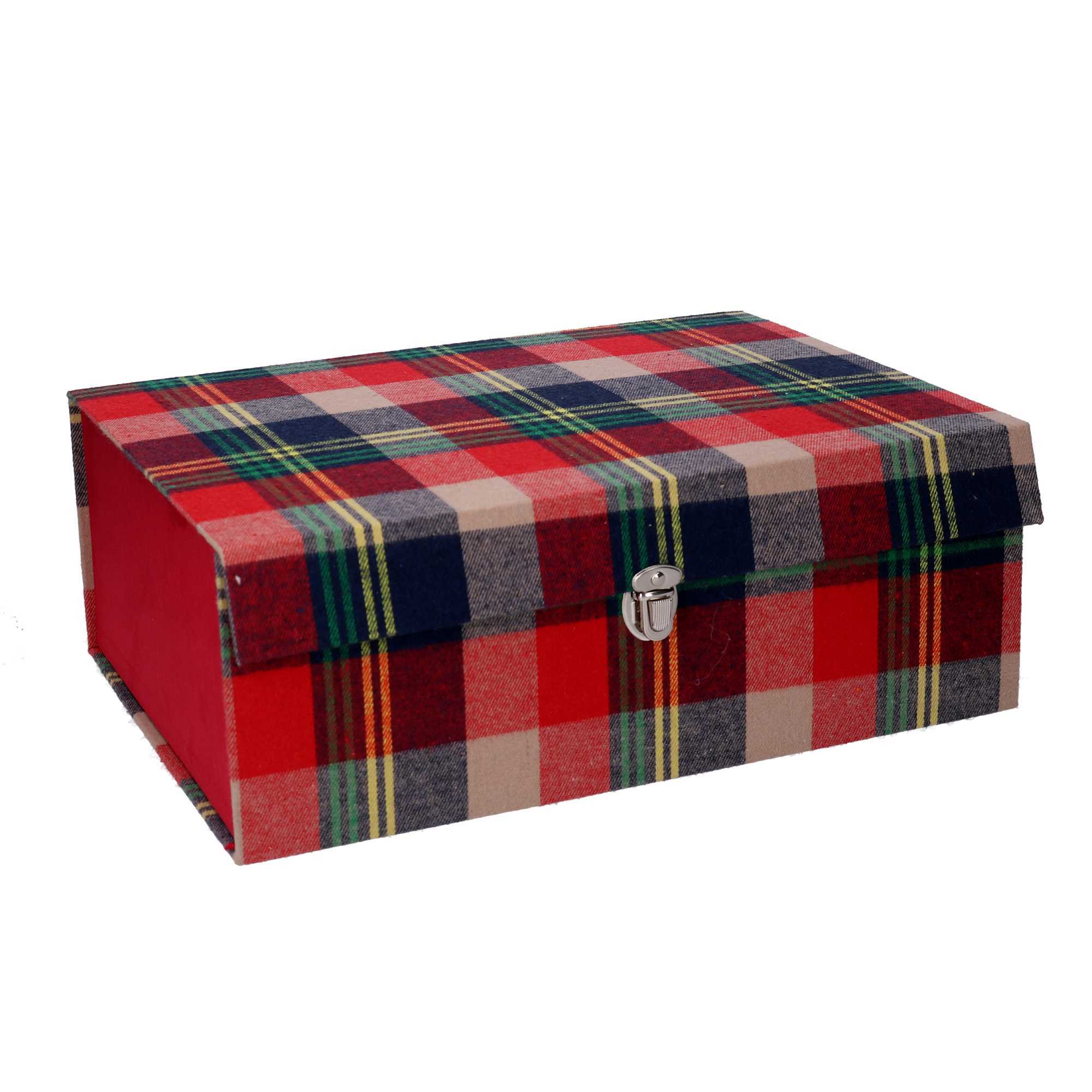 Scatola cartone tessuto pieghevole rosso scozzese cm36x27h13