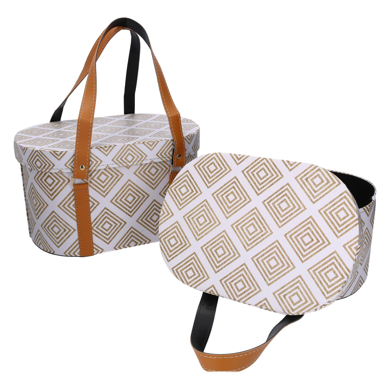 Scatola ecopelle con manici 2^ bianco ovale cm36x26h20