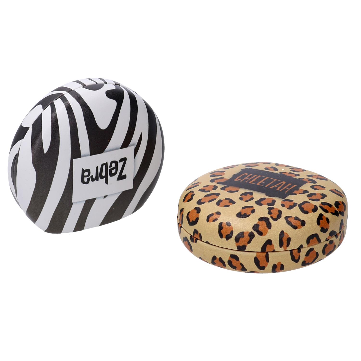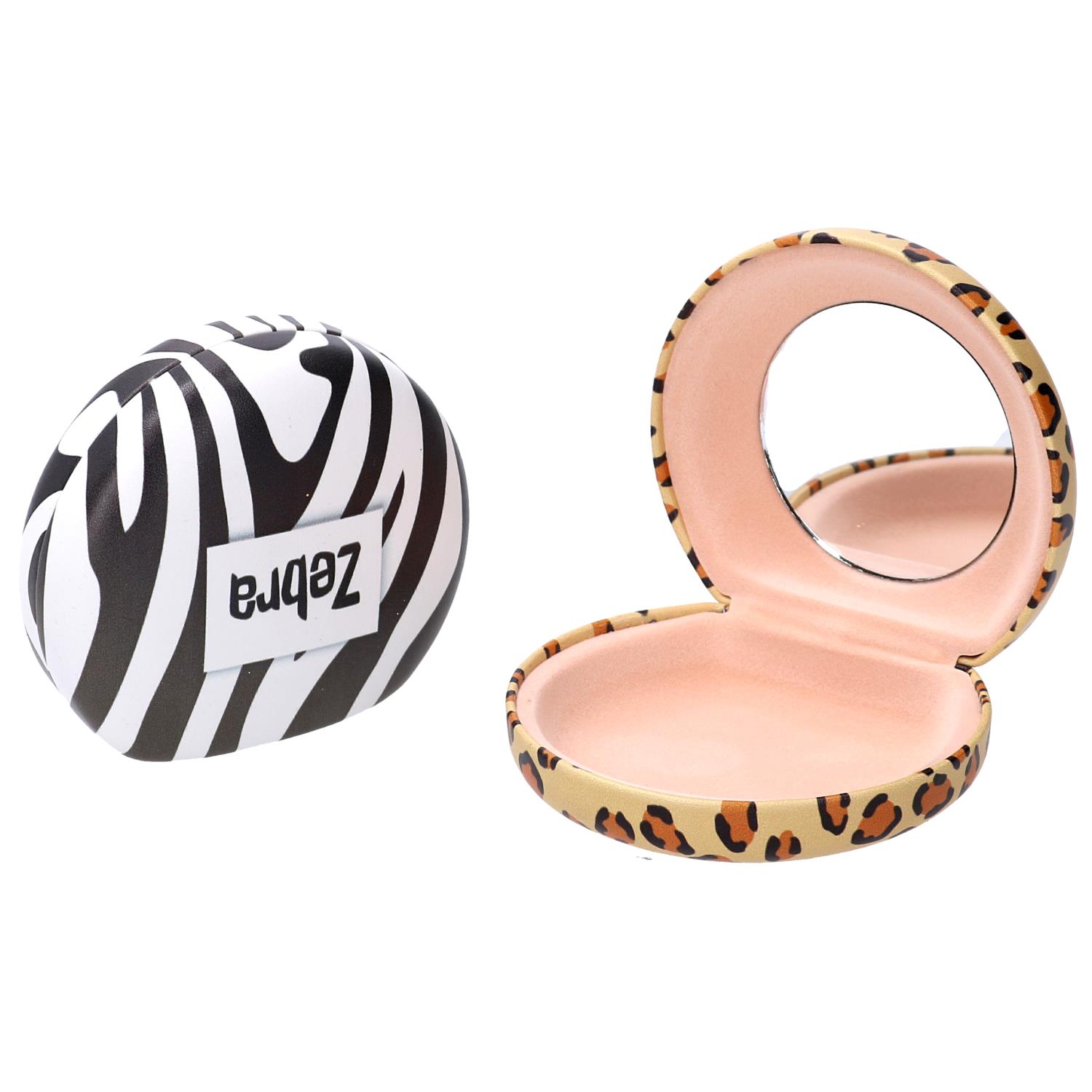 Scatola ecopelle con specchio animali 2assortiti cm7,6×7,1h3,1