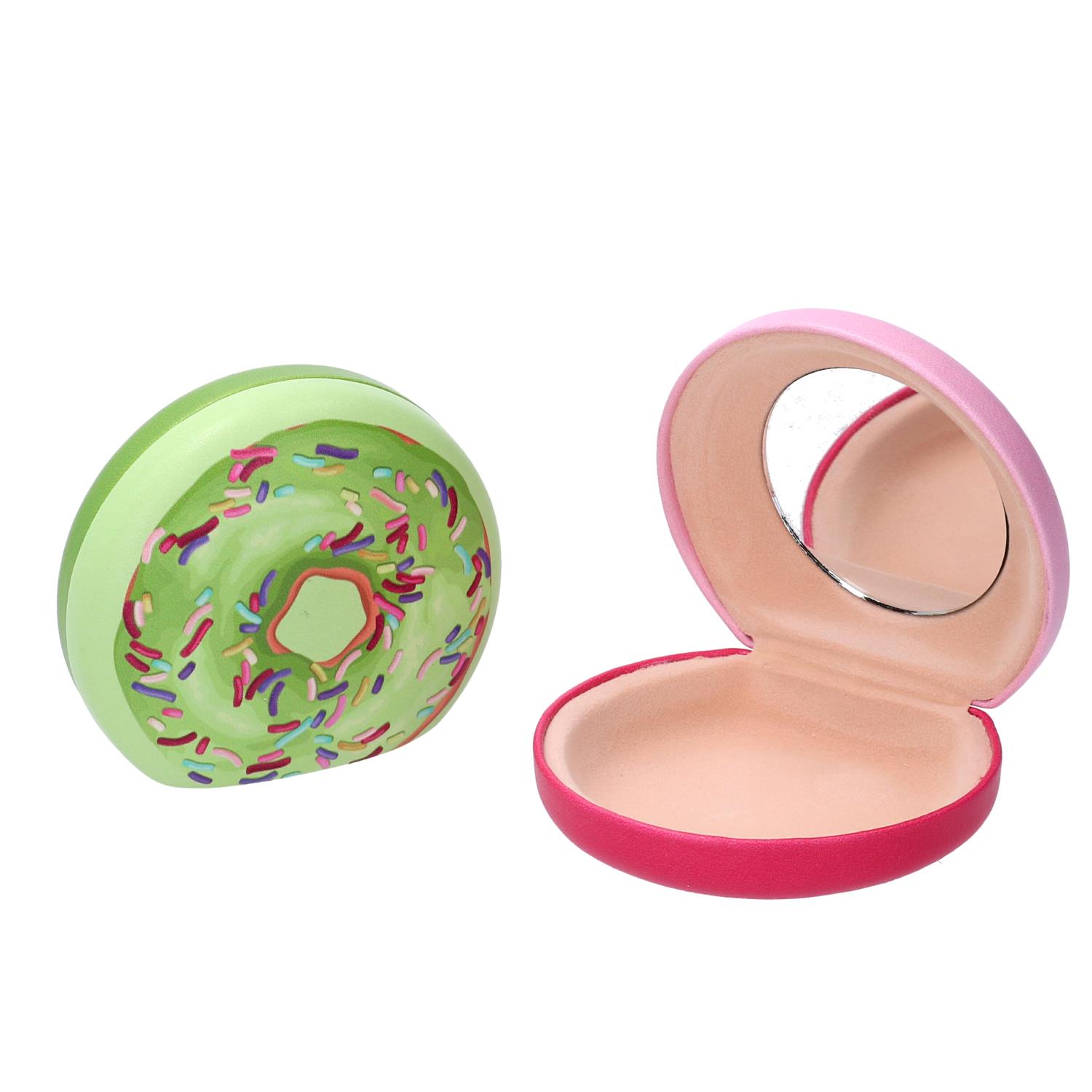 Scatola ecopelle con specchio ciambella2 assortiticm7,6×7,1h3,1