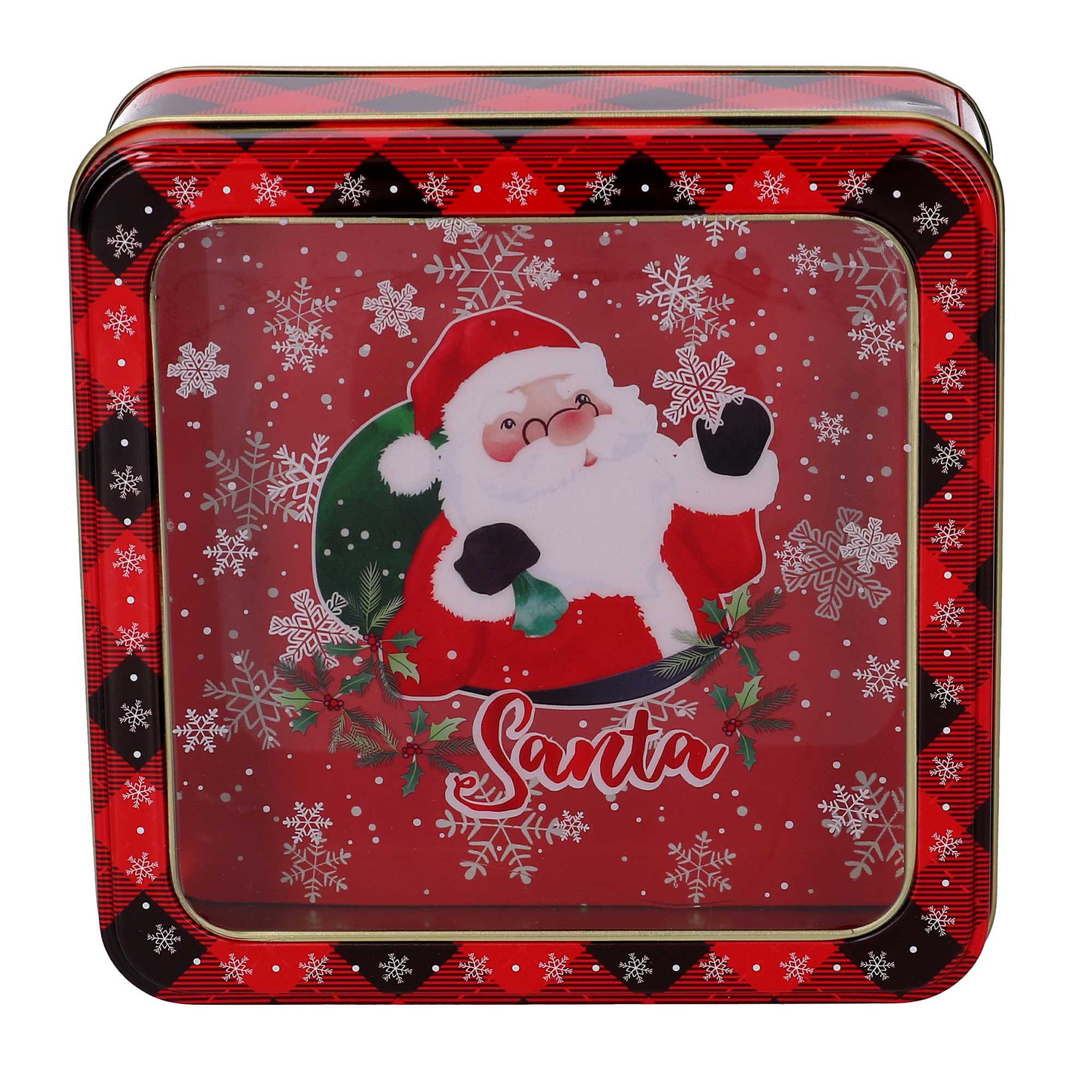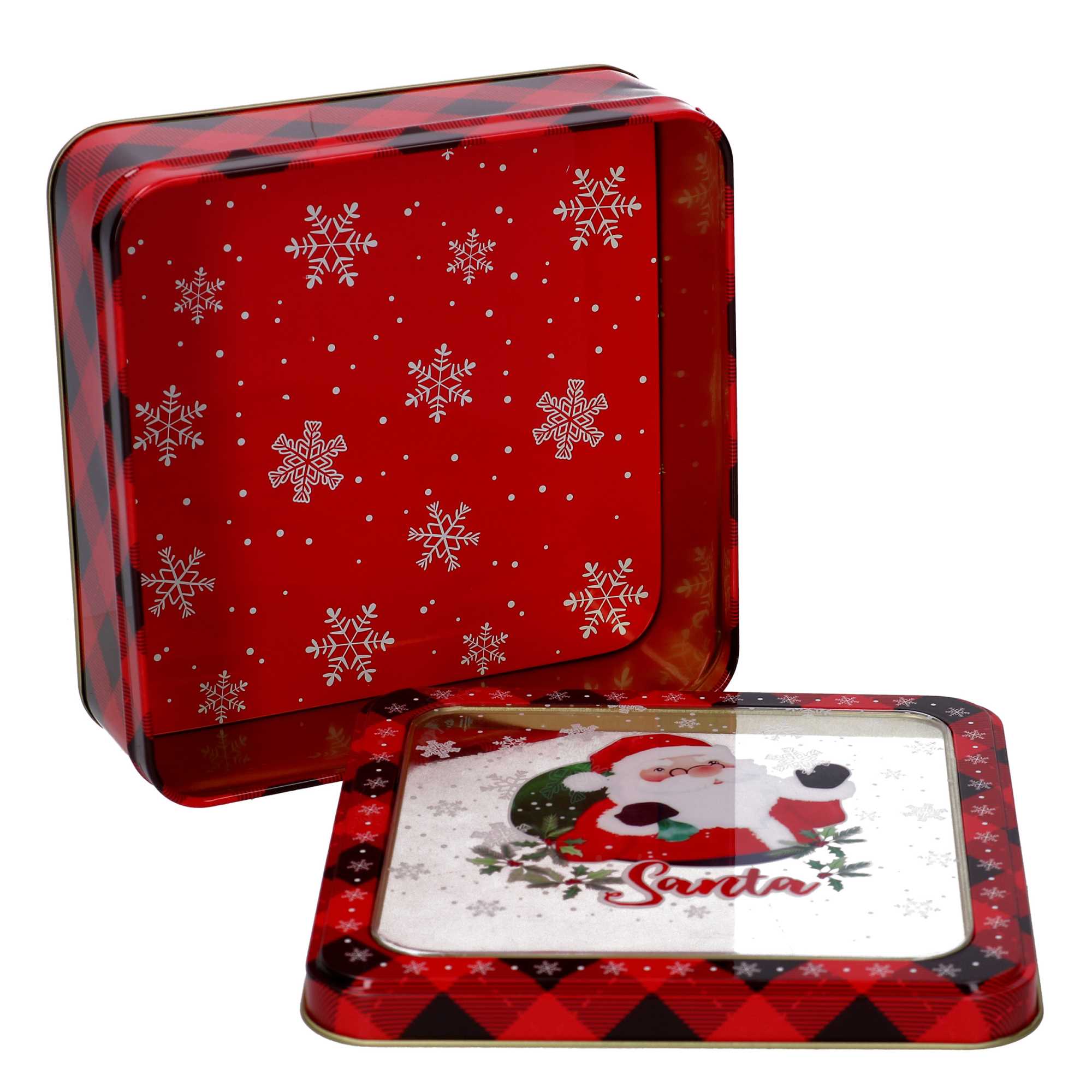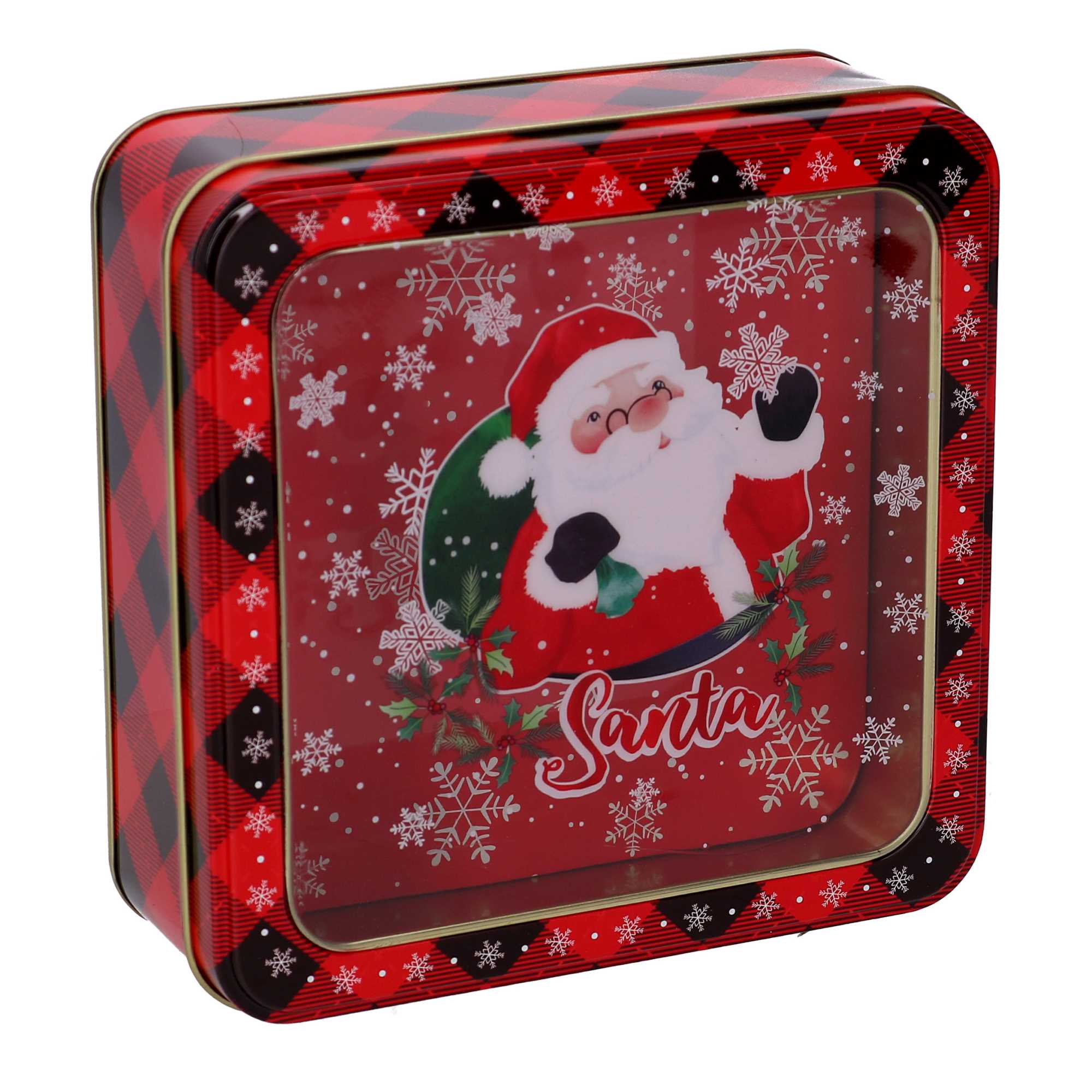 Scatola metallo babbo natale rosso cm15x15h5,5