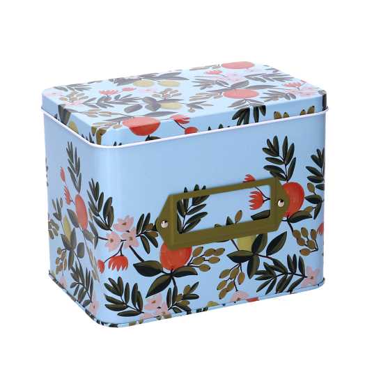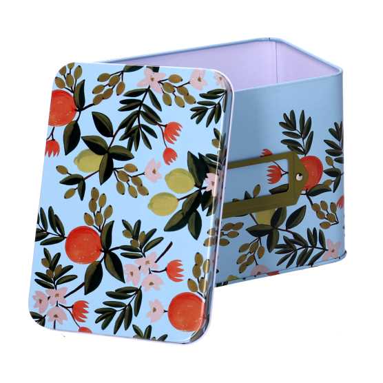 Scatola metallo frutta azzurro rettangolare cm15,8×10,8h12,7