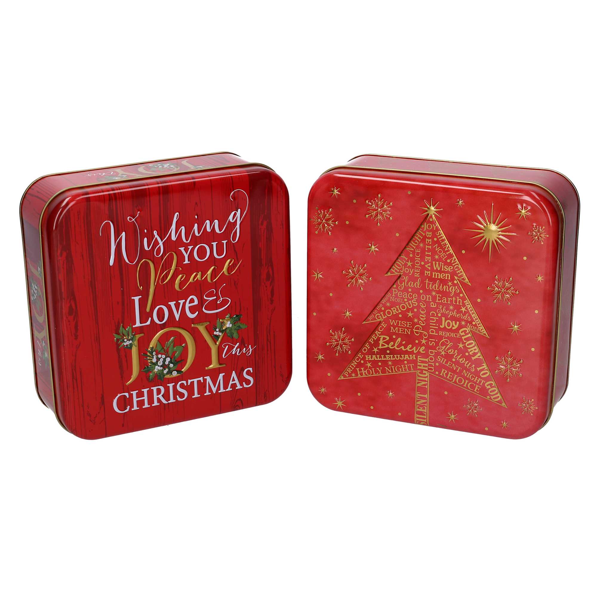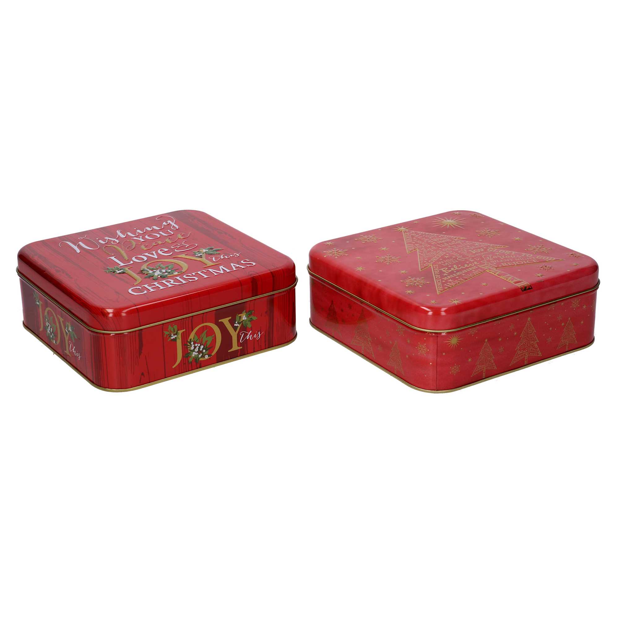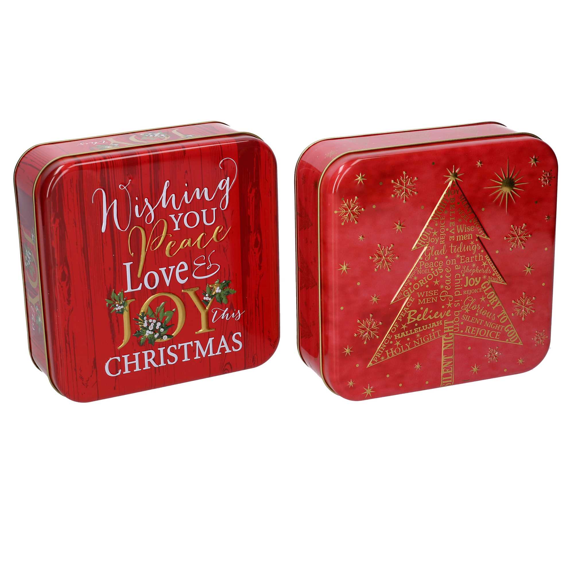 Scatola metallo scritte rosso 2 assortiticm17x17h5,8