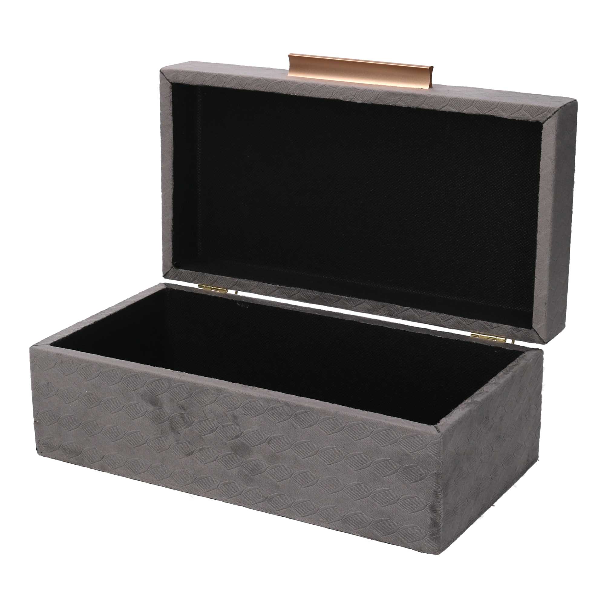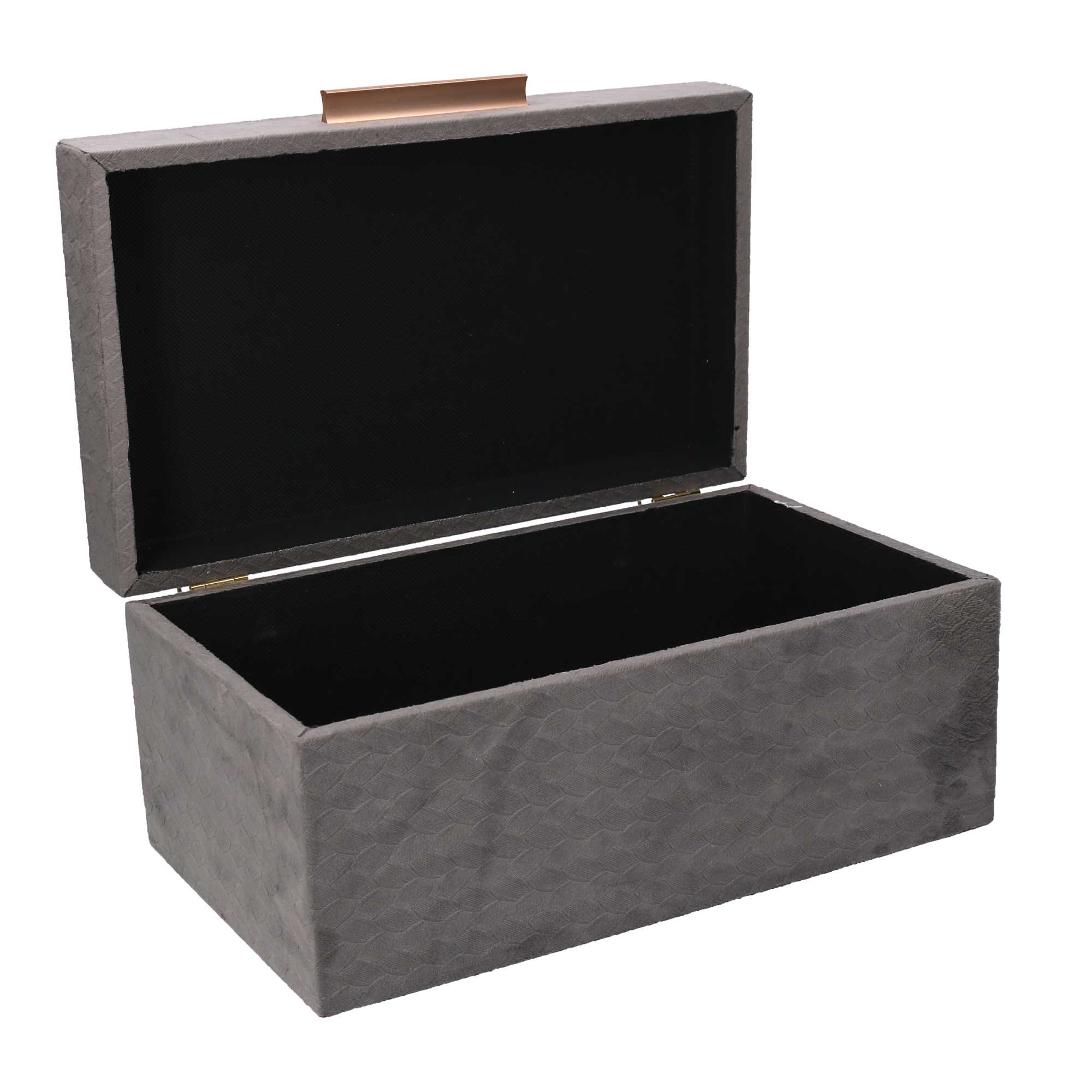 • Scatola velluto 1-2 treccia grigio rettangolare cm34x20h16: Struttura in legno, finitura in velluto