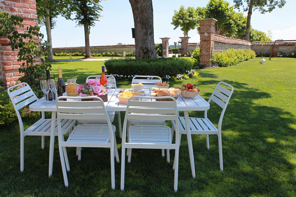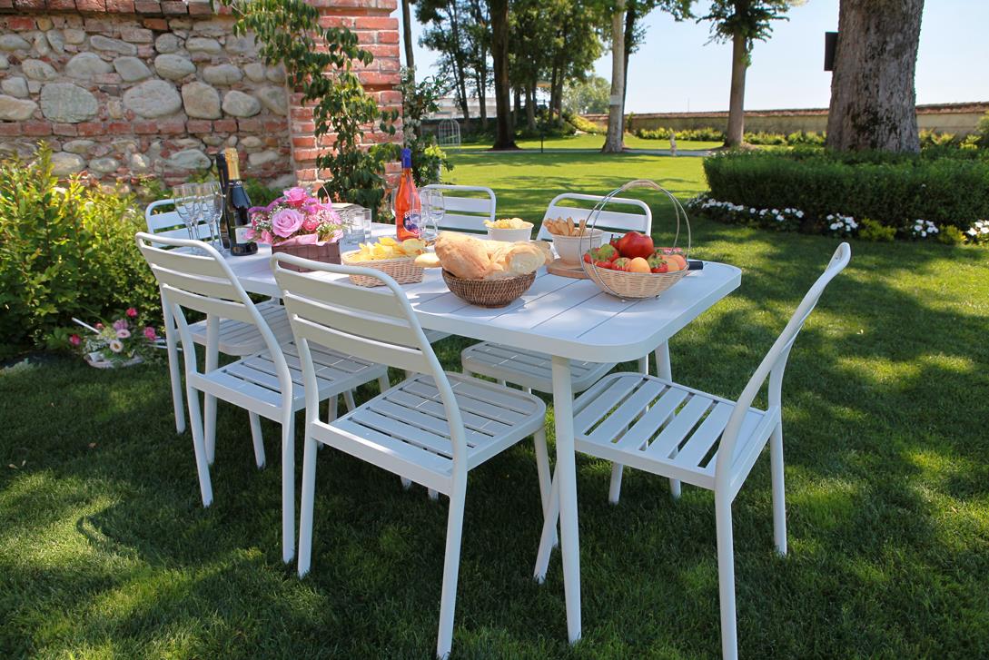 Sedia in alluminio bianca, impilabile per risparmiare spazio. Ideale per arredare il tuo giardino o terrazza con stile e praticità.