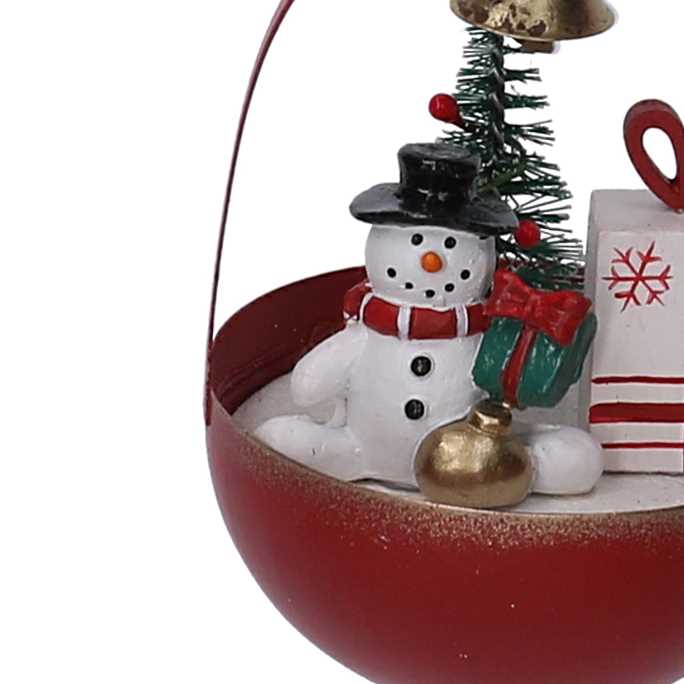 Sfera metallo con pupazzo di neve rossocm ø8h12,5