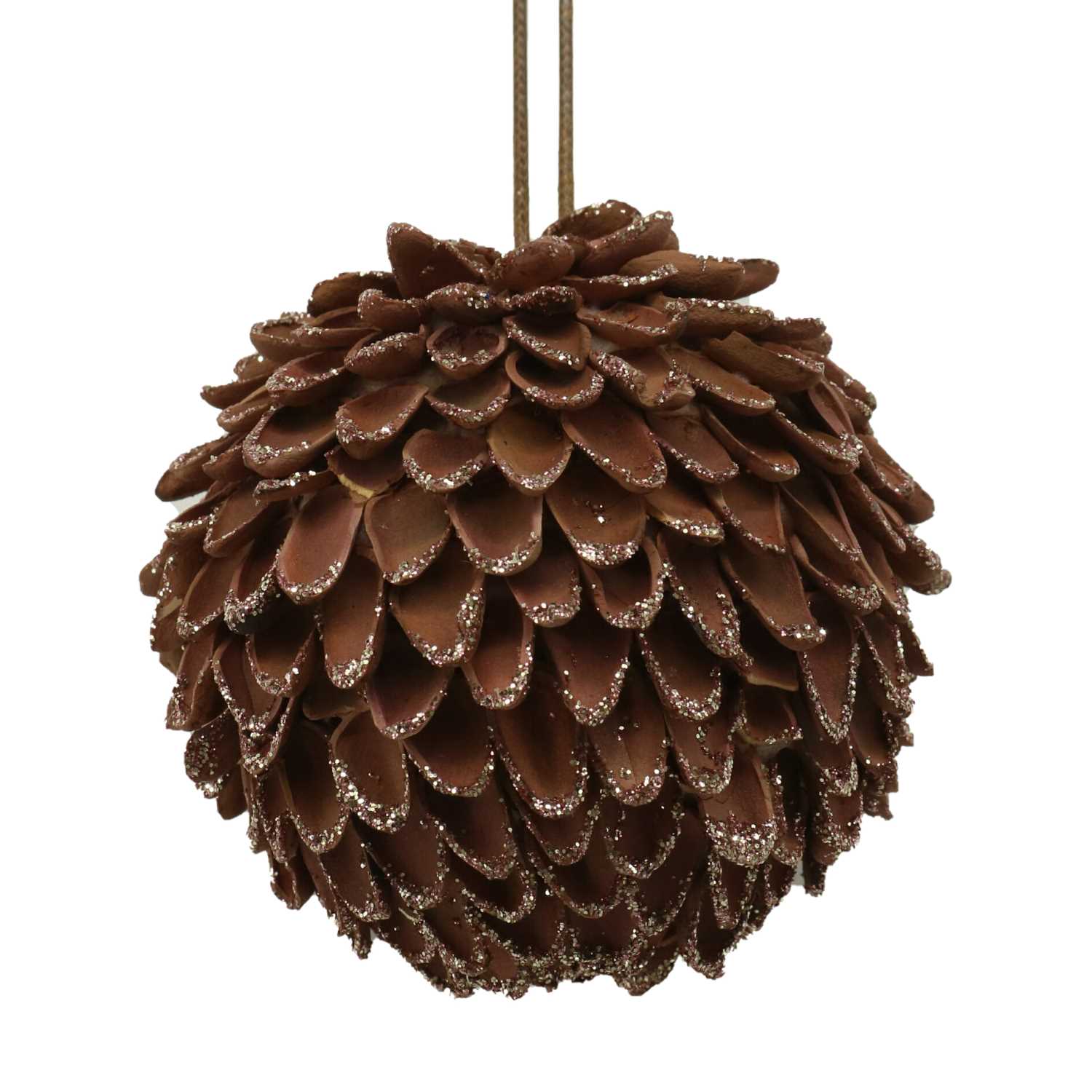 Sfera pigna bronzo cm ø8h8: interno in polistirolo rivestito da pezzi di legno (effetto pigna)