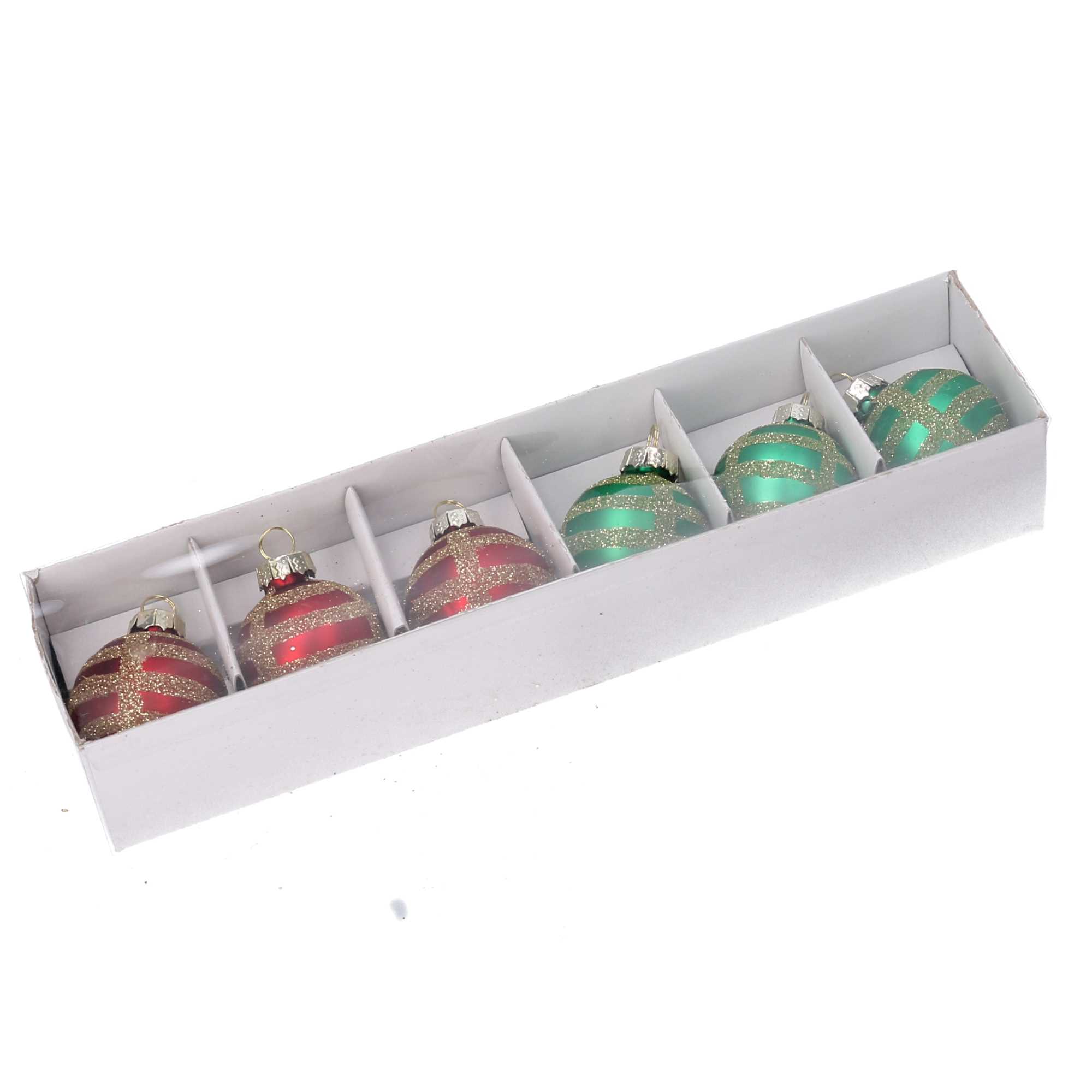 Sfera vetro confezione 6pz verde rosso cm27x6,7h4,3. CM. DIA. 4n