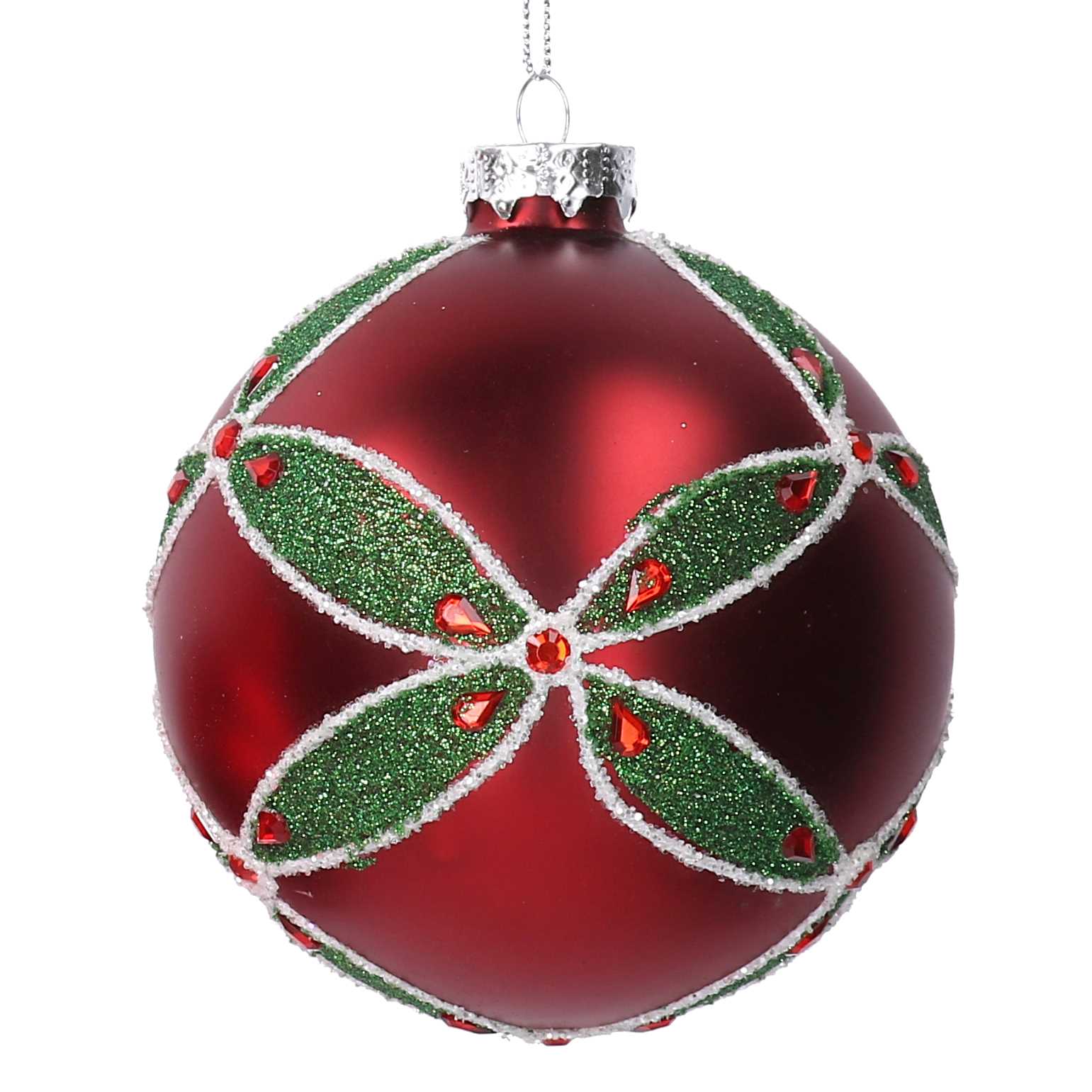 Sfera vetro rosso fiore glitter verdi cm ø10h10