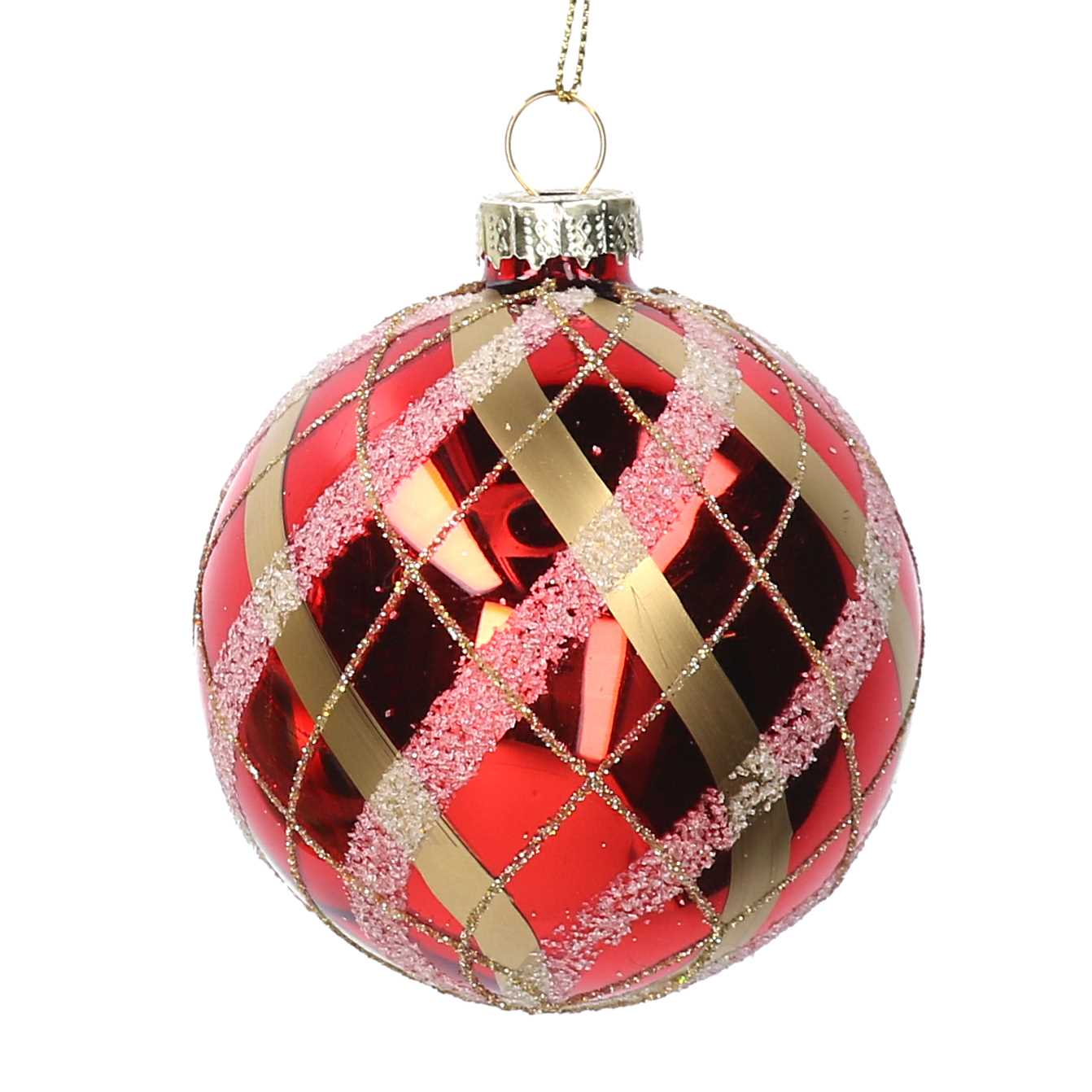Sfera vetro rosso righe oro e verde cm ø8h8