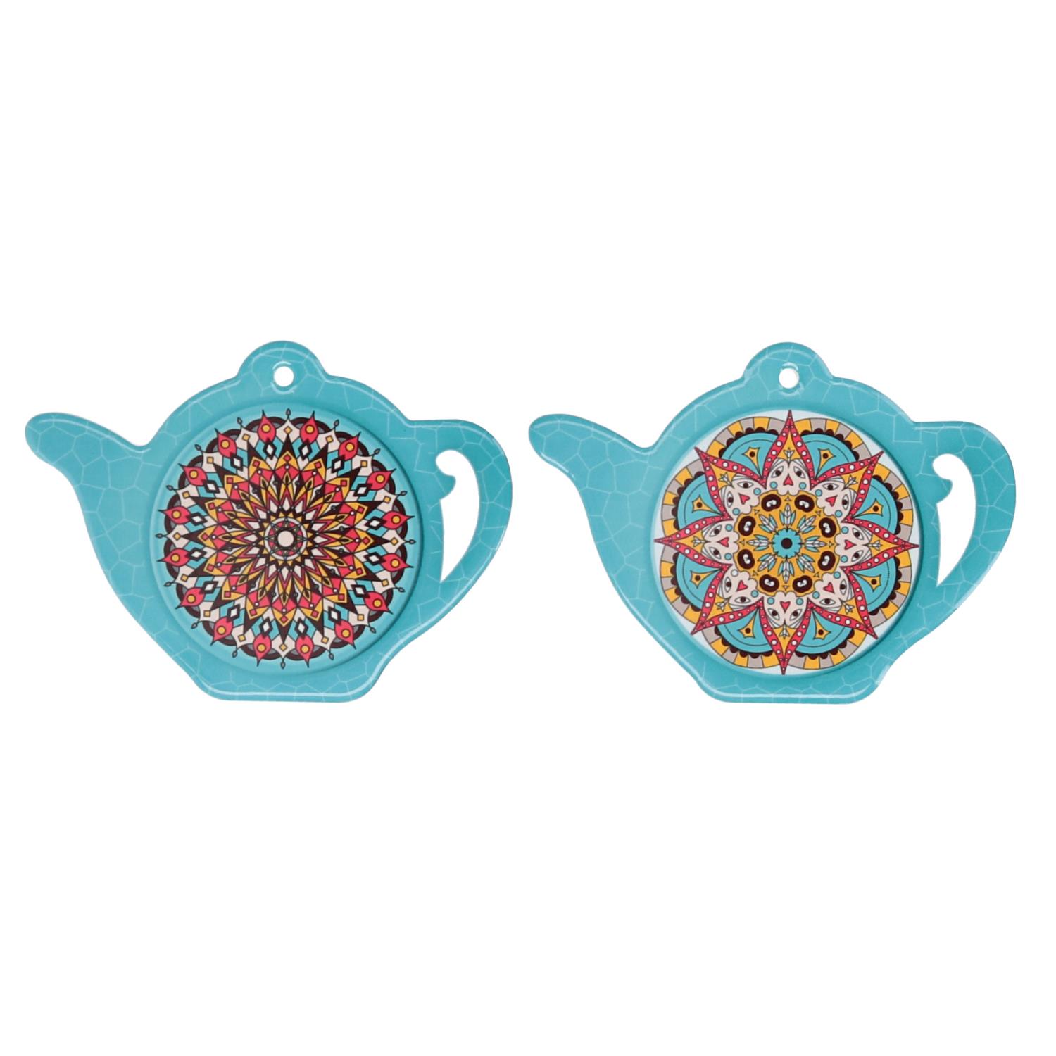 Sottobicchiere ceramica confezione 4 pezzi teiera azzurro cm14x11