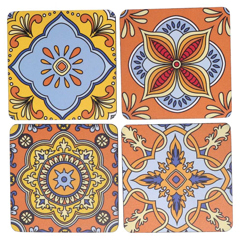 Sottobicchiere legno confezione 4pz assortiti arancione quadro cm10x10x0,5