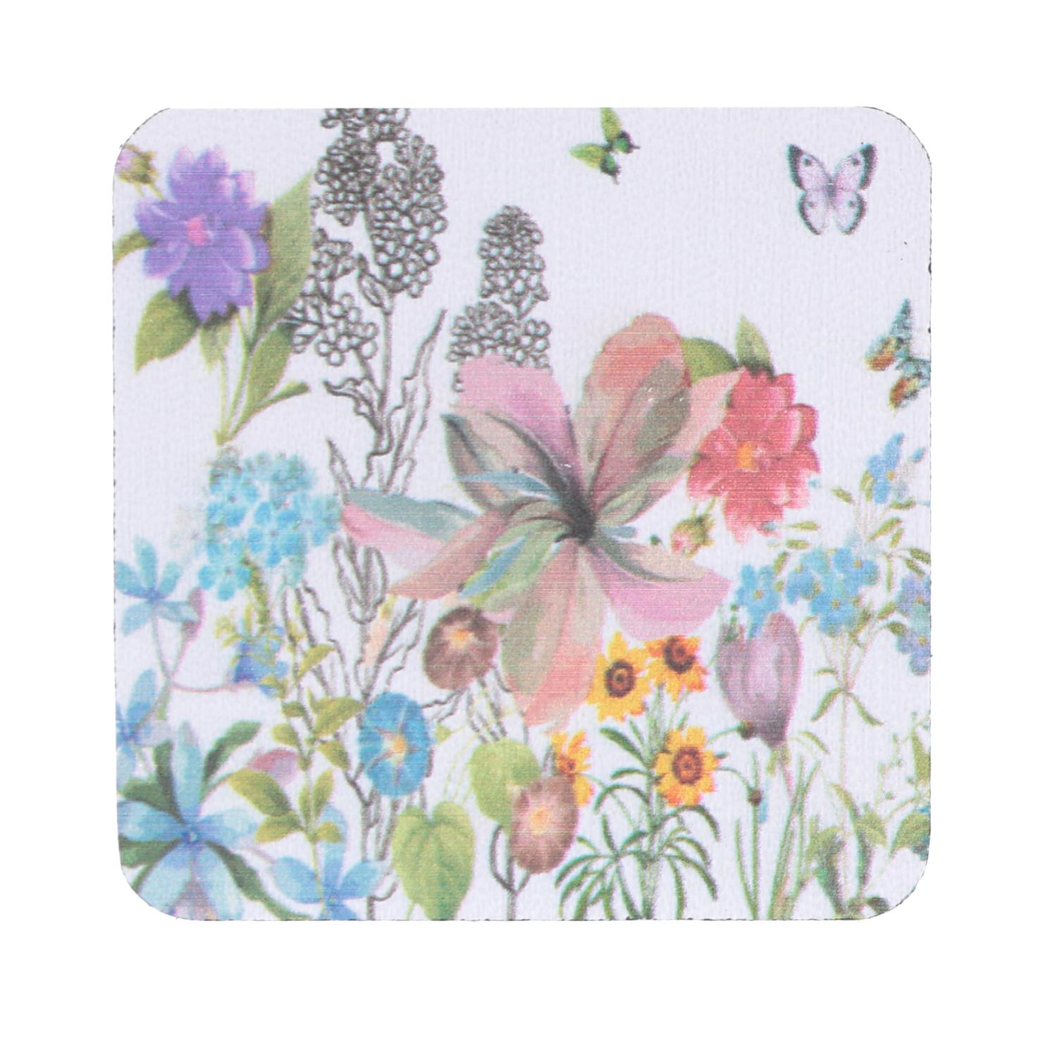 Sottobicchiere legno confezione 6 pezzifiori bianco quadro cm10x10h0,5