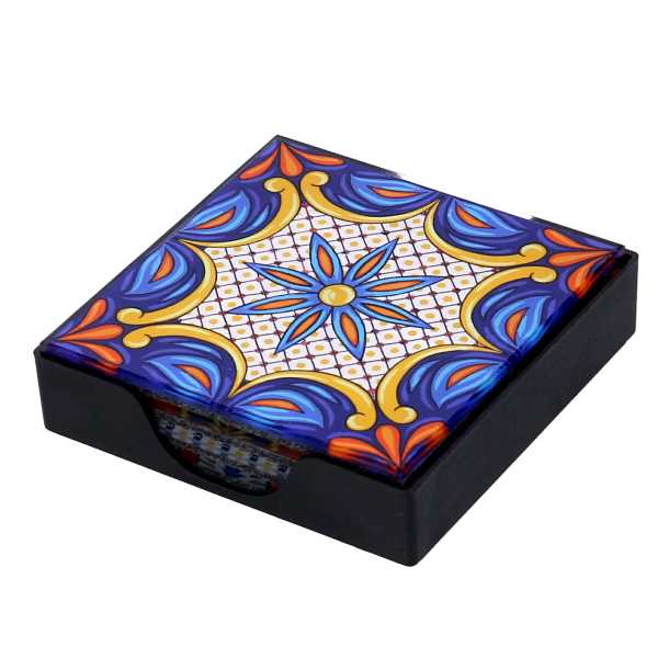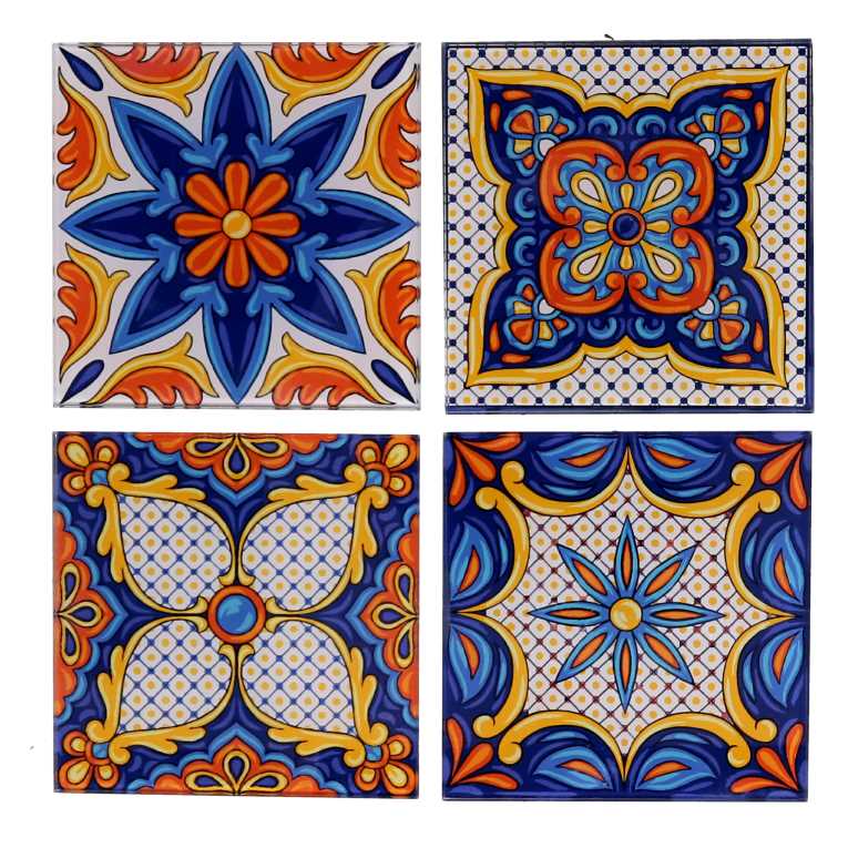 Sottobicchiere vetro confezione 4pz assortiti blu quadro cm10x10x0,6