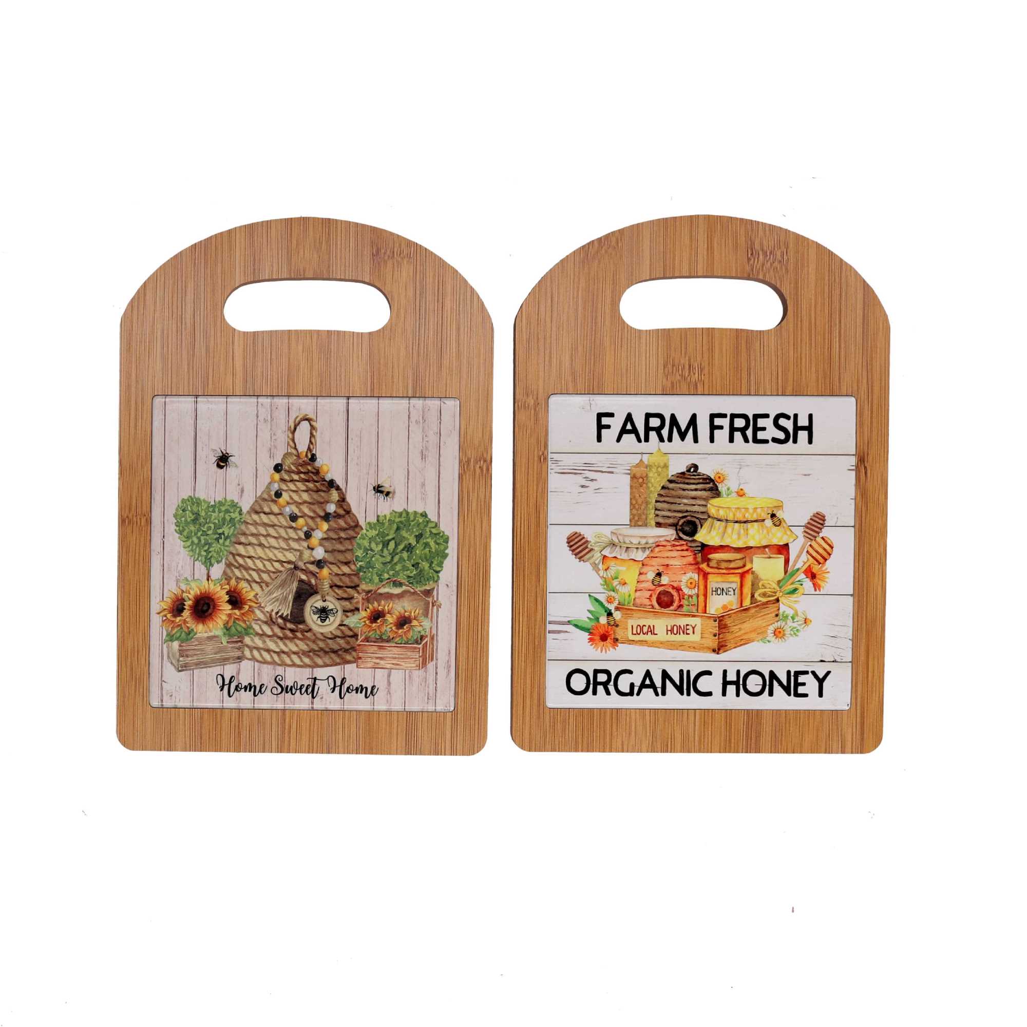 Sottopentola ceramica e legno miele quadro 2 assortiti cm19x27x0,9n