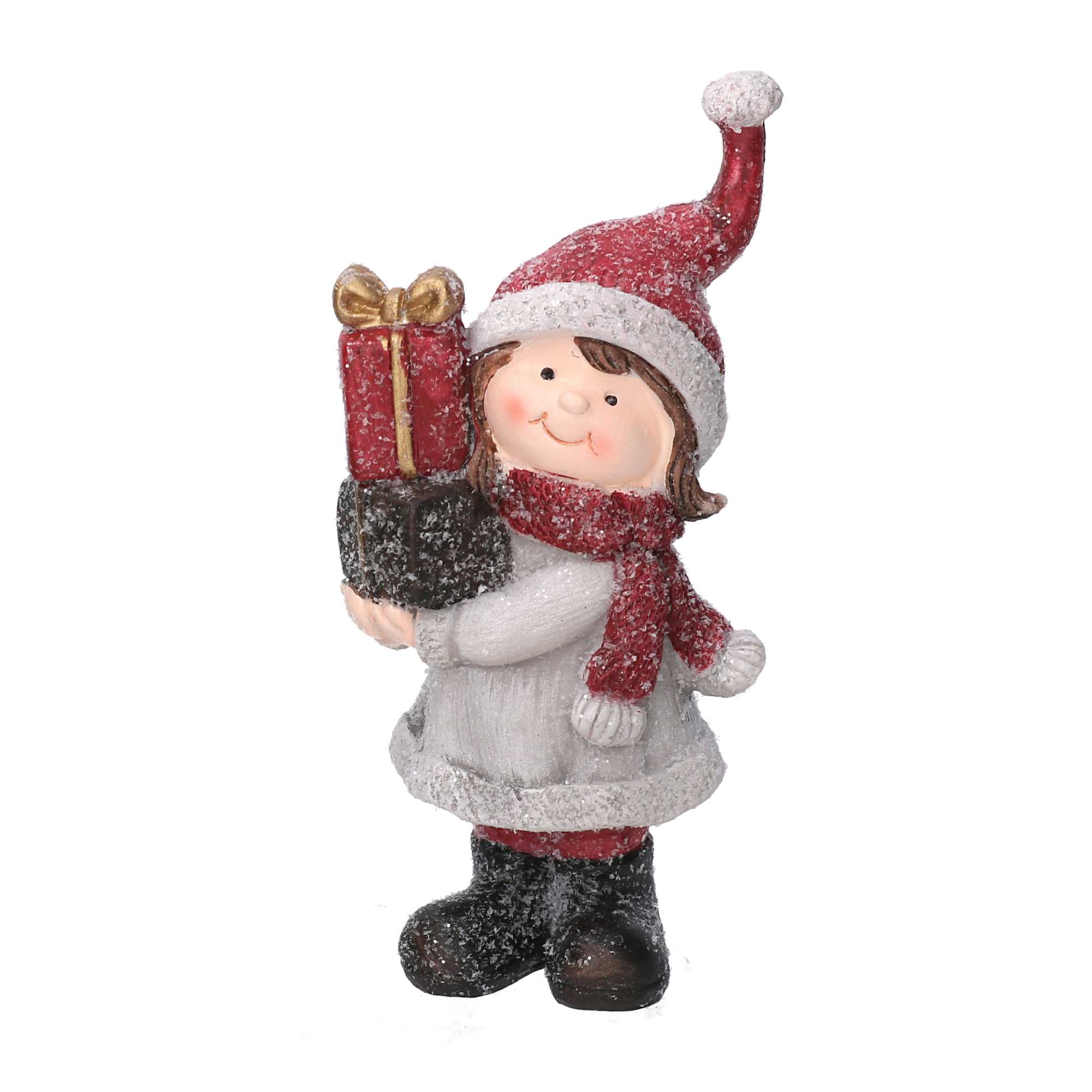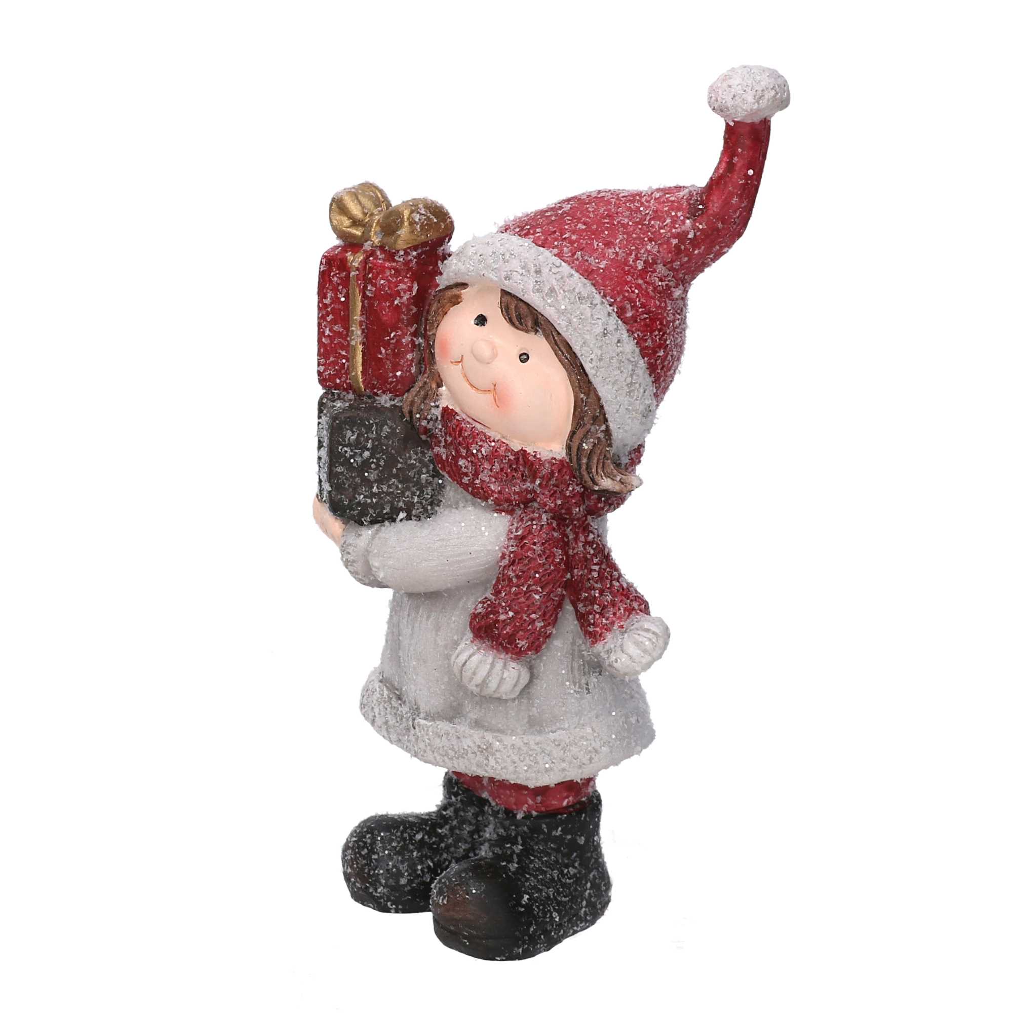 Statua resina bambina con regali cm8x8h17