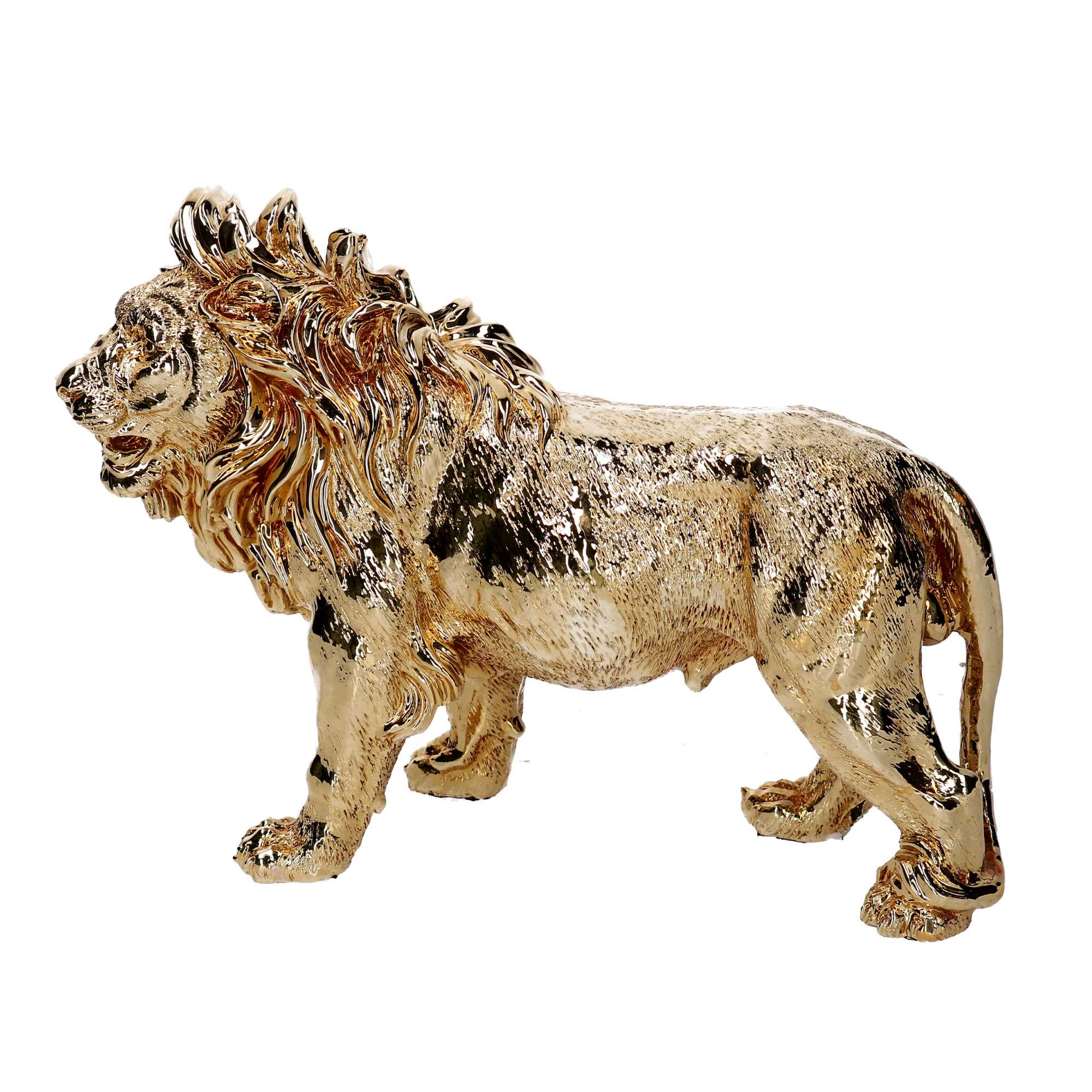 Statua resina leone oro cm18h38