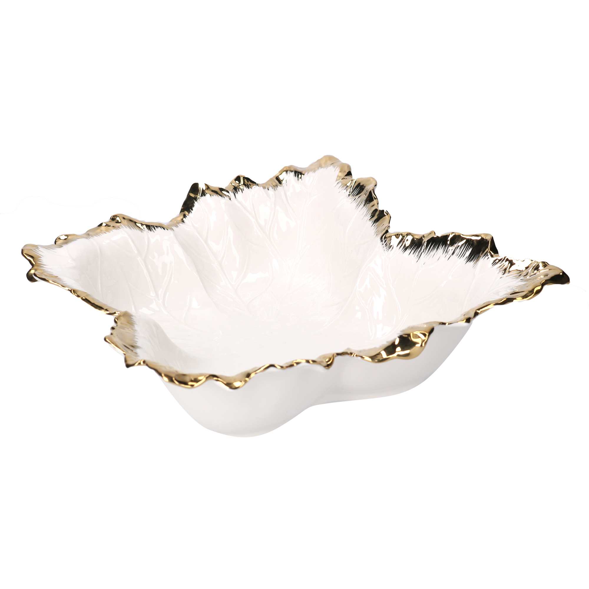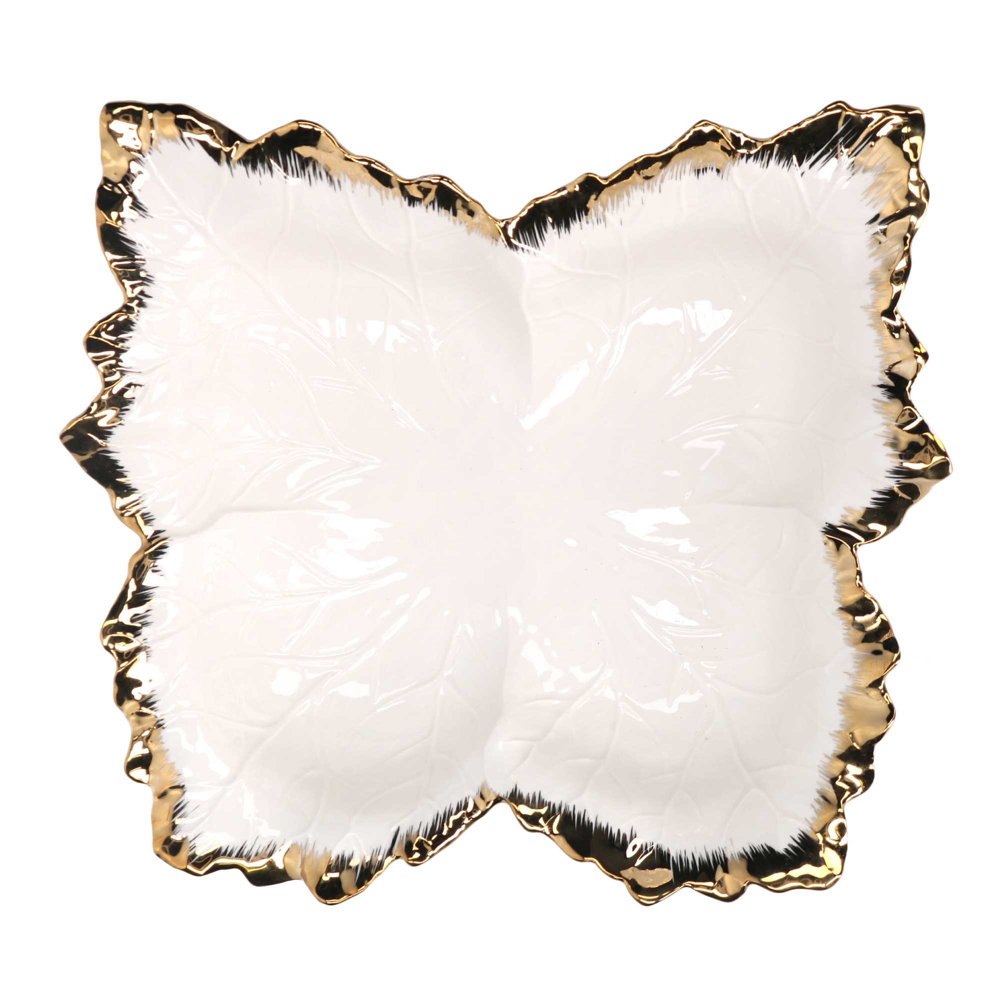 Svuotatasche ceramica foglia oro biancocm30x28h8,1